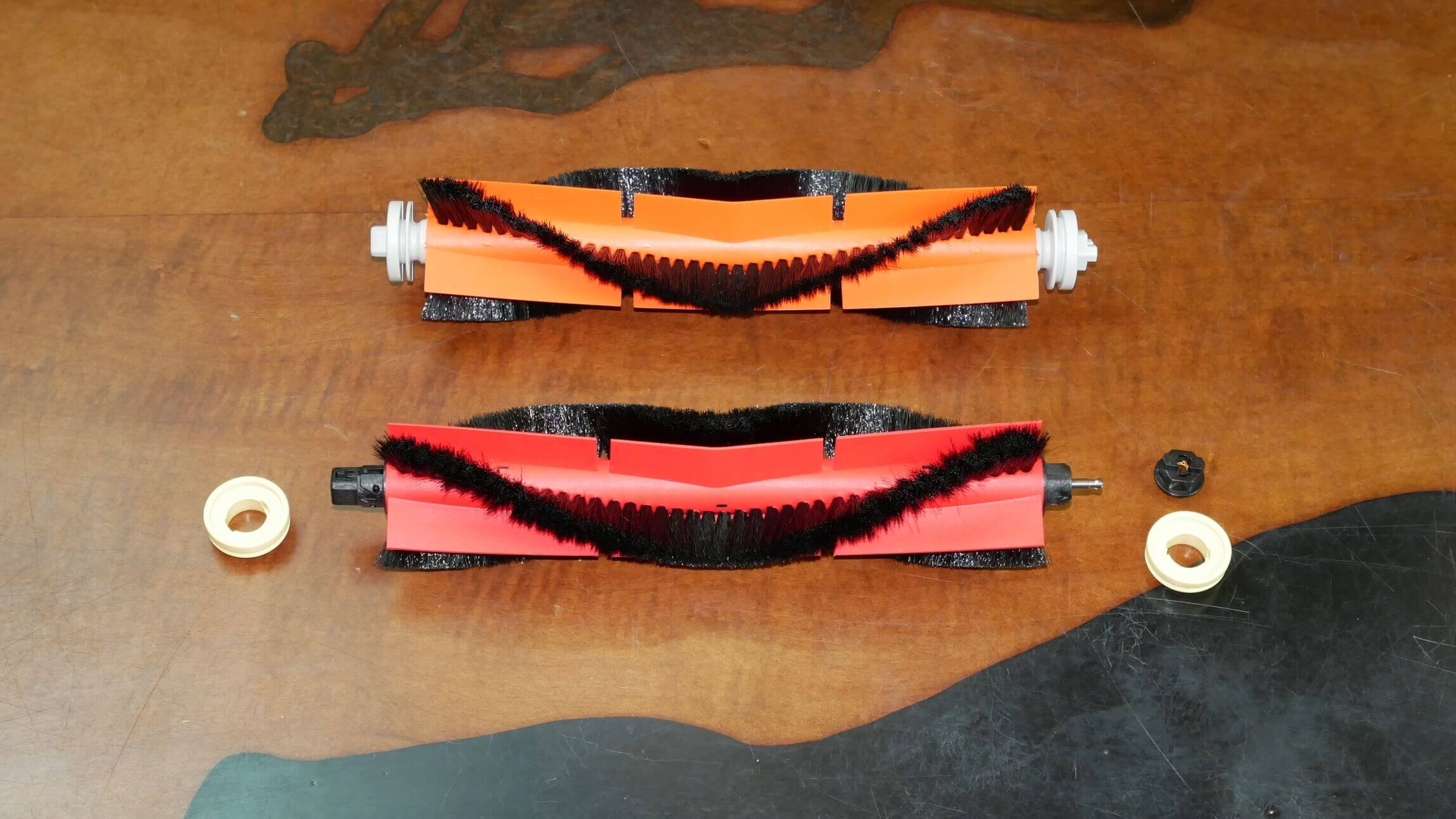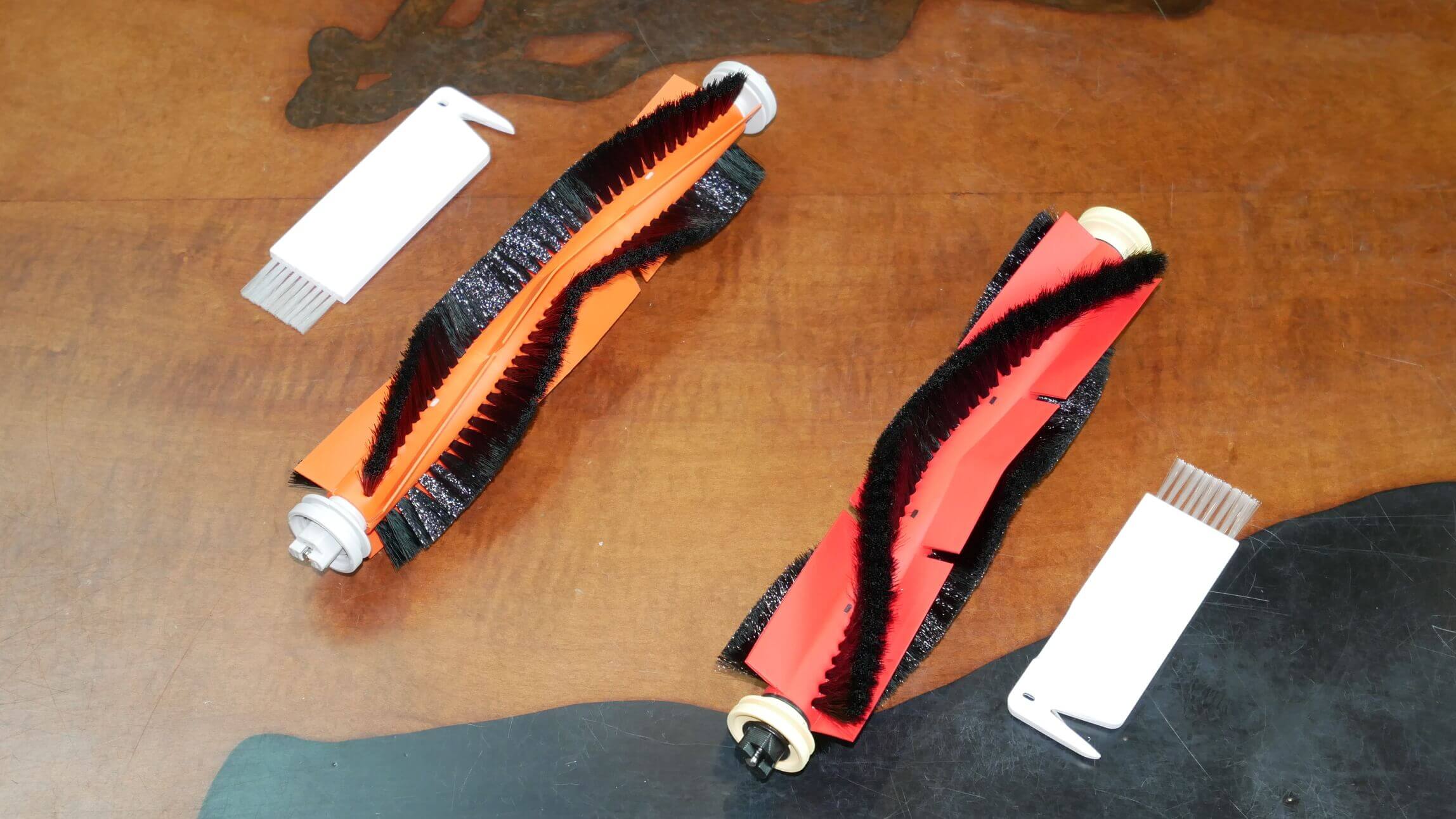 Pirmiausia palyginkime „Roborock“ robotų centrinius šepečius. Jie būna dviejų versijų. Pirmasis yra nenuimamas šepetys. Jie buvo montuojami robotuose iki antrosios kartos imtinai, t. y. iki Roborock S5Dalies numeris SDZS02RR. Originalūs centriniai šepetėliai papildomai aprūpinti specialiu valymo įrankiu. Pats šepetėlis nuo nuimamo varianto skiriasi tuo, kad šereliai plonesni, silikoniniai peiliukai mažiau lankstūs, o šepetėlio mechanizmas nenuimamas. Dėl to tai iš esmės yra biudžetinis pasirinkimas.