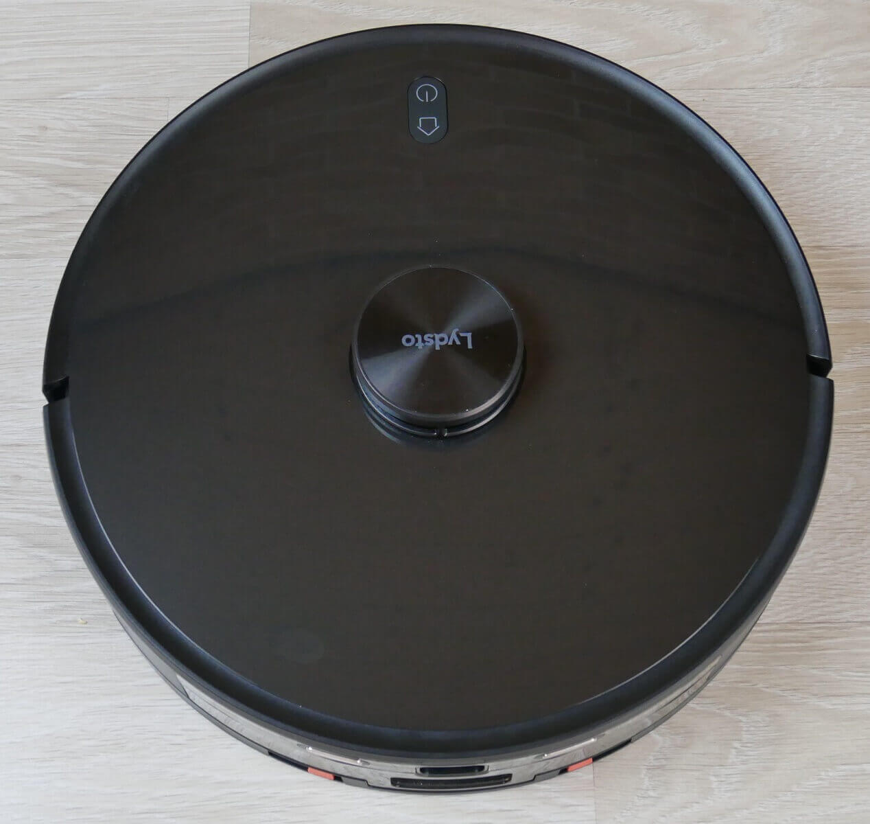 Dabar pažvelkime į „Lydsto R1“ dizainą. Jis apvalus ir juodas. Plastikas yra blizgus ir lengvai susitepa. Visos apžvalgos metu turėjau nuolat valyti korpusą, kad robotas atrodytų reprezentatyviai.