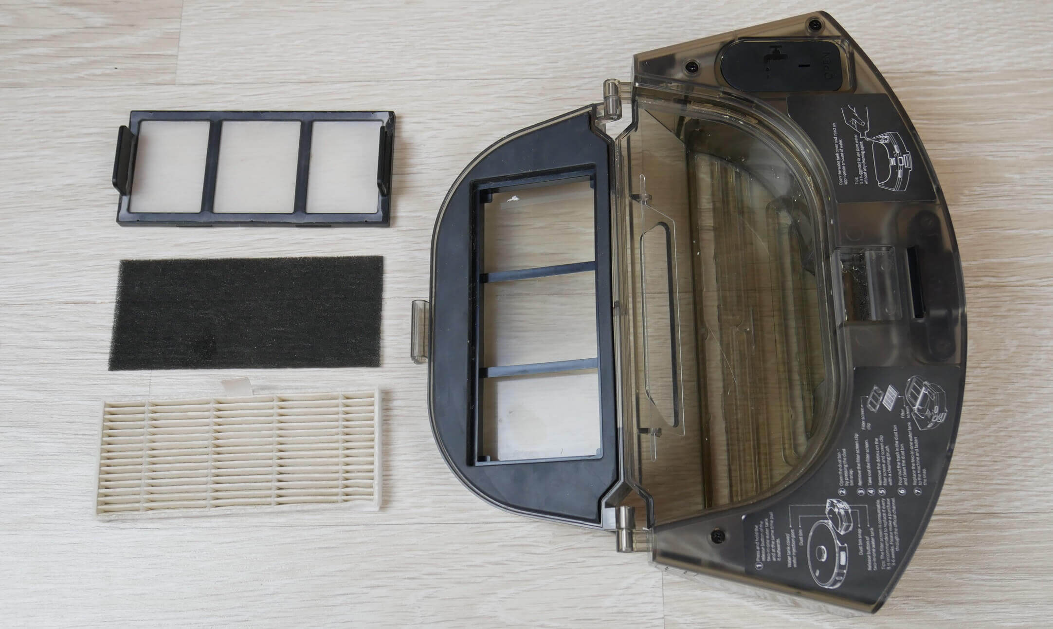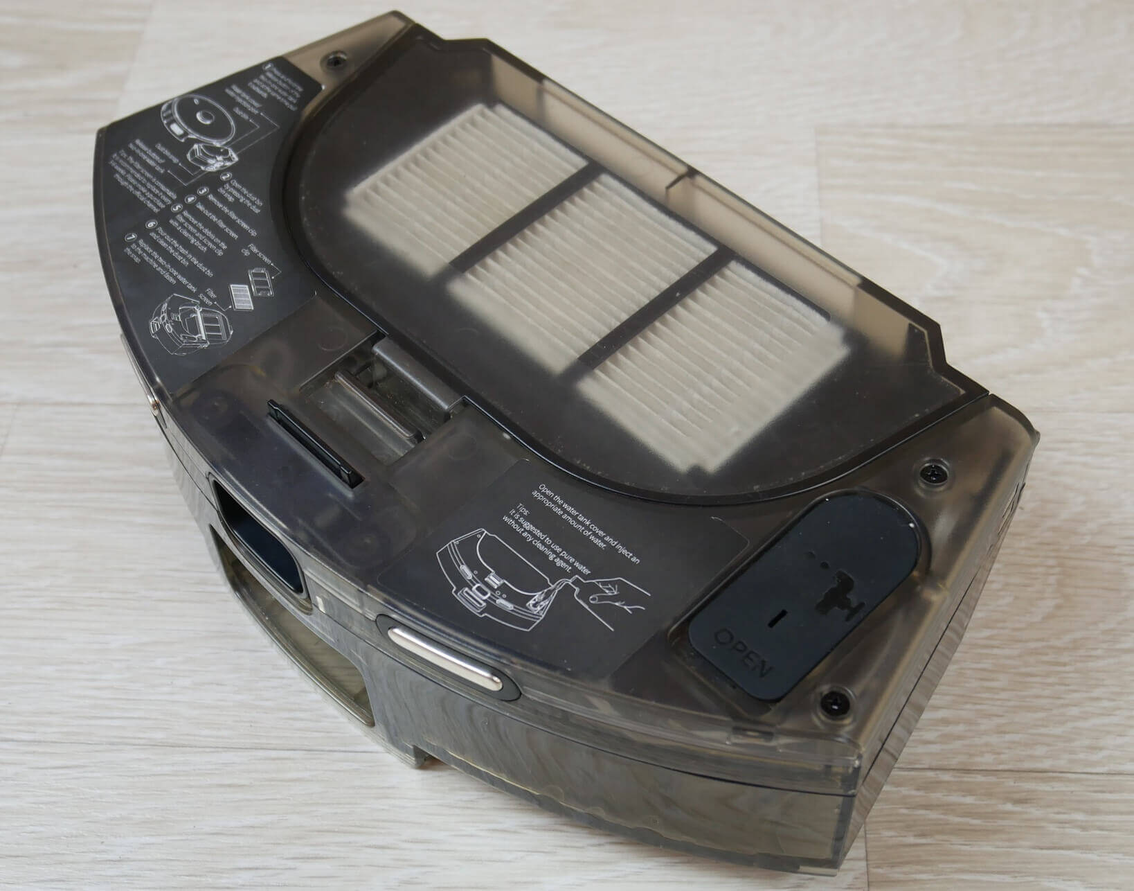 Kombinuotas vandens ir dulkių surinktuvas išimamas iš galo. Jame yra jungtys, skirtos prijungti prie savaiminio valymo stoties, taip pat dulkių surinktuvo ištuštinimo dangtelis. Apačioje yra trys skylės, skirtos tiekti vandenį į valymo šluostę.