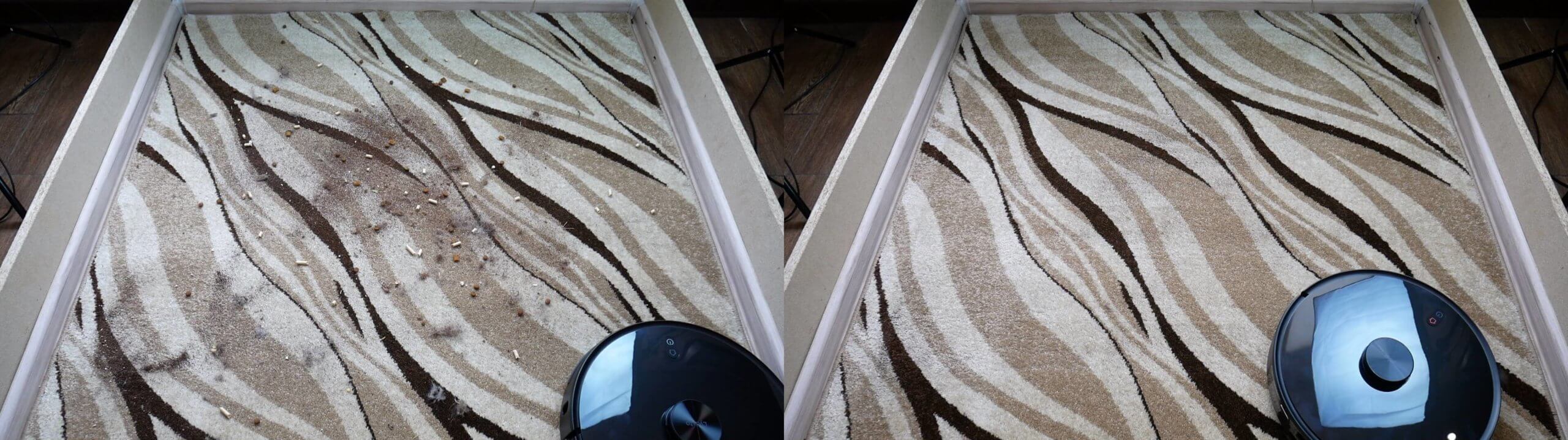 Tos pačios šiukšlės buvo išbarstytos ant kilimo. „Lydsto R1“ puikiai atliko šią užduotį. Visos šiukšlės buvo surinktos. Bandymas buvo sėkmingas.