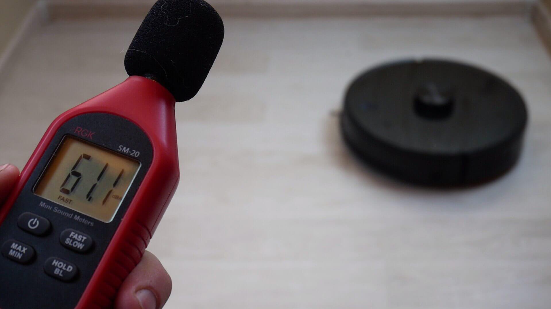 Galiausiai išmatavome „Lydsto R1“ triukšmo lygį skirtingais režimais. Esant minimaliai galiai, triukšmo lygis svyravo nuo 59 iki 61 dB. Standartiniu režimu jis siekė 62 dB. Didelės galios režimu triukšmo lygis siekė 68 dB, o maksimalios galios režimu – 69 dB. Triukšmo lygis yra gana standartinis robotų dulkių siurblių atveju.