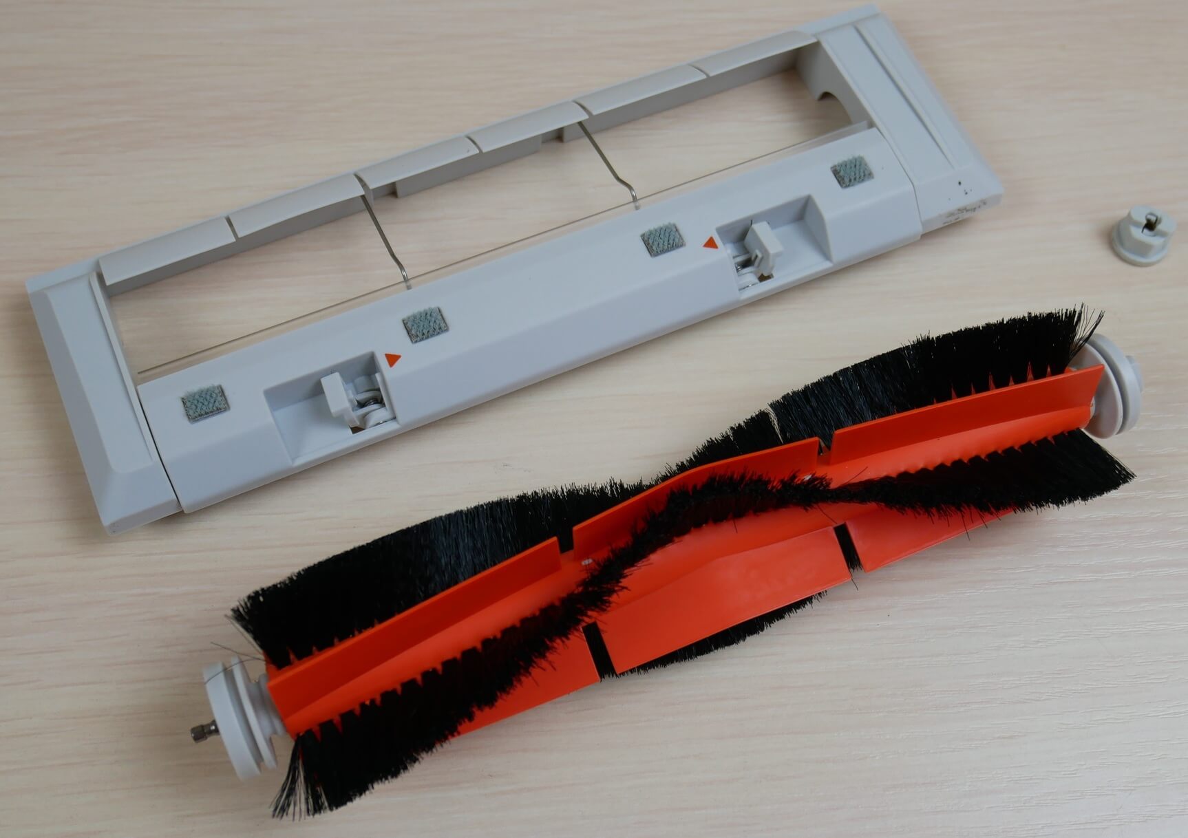 Pirmas dalykas, kuris patraukia akį, yra šešių sijų šoninis šepetys. Jį jau rodžiau, kai jį gaminau. „AliExpress“ eksploatacinių medžiagų, skirtų „Xiaomi“ robotų dulkių siurbliams, apžvalga.