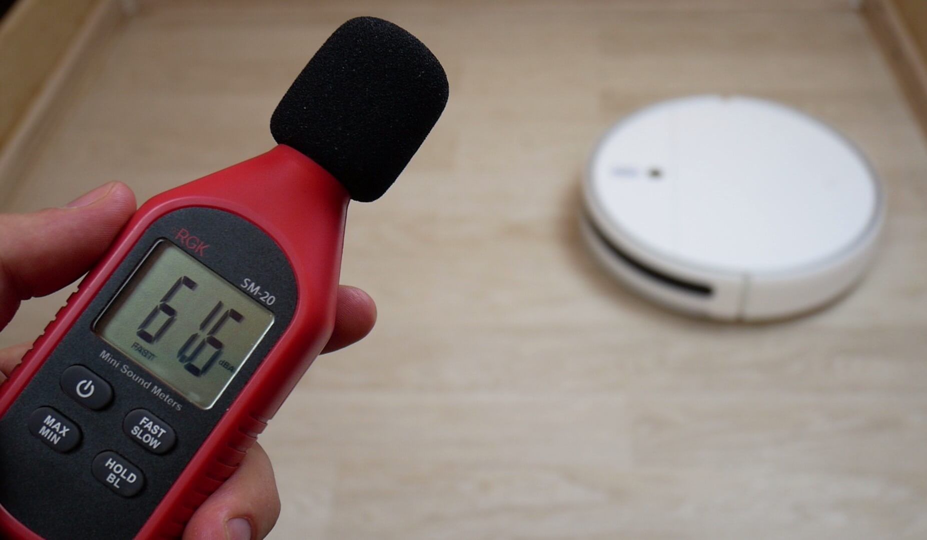 Atsižvelgiant į padidintą siurbimo galią, triukšmo lygis yra gana priimtinas ir iš principo standartinis robotų dulkių siurbliams.