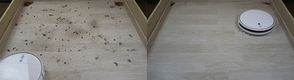 Dėl cheminio valymo rezultatų nusiskundimų nebuvo. Robotas surinko visas šiukšles nuo grindų, palikdamas tik nedidelį kiekį kampuose, o tai yra universalių robotų silpnoji vieta. Didžioji dalis šiukšlių buvo surinkta dulkių konteineryje, o plaukai buvo susivėlę aplink centrinį ir šoninius šepečius. Testas sėkmingai išlaikytas.