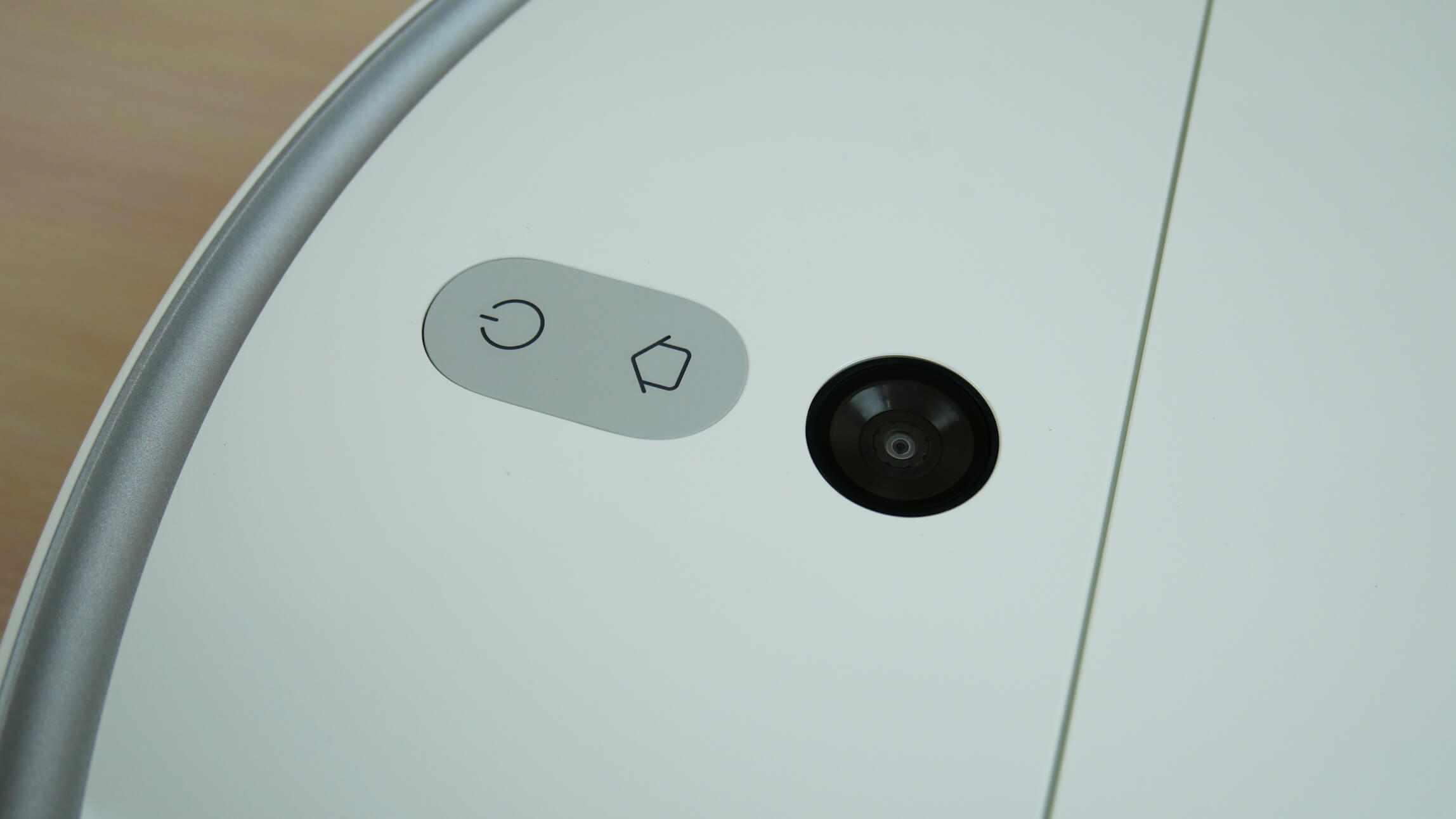 Viršutiniame valdymo skydelyje yra du mechaniniai mygtukai: paleidimas / pristabdymas ir priverstinis grįžimas į įkrovimo bazę. Netoliese yra kamera, kuri yra pagrindinis roboto dulkių siurblio navigacijos įrenginys.