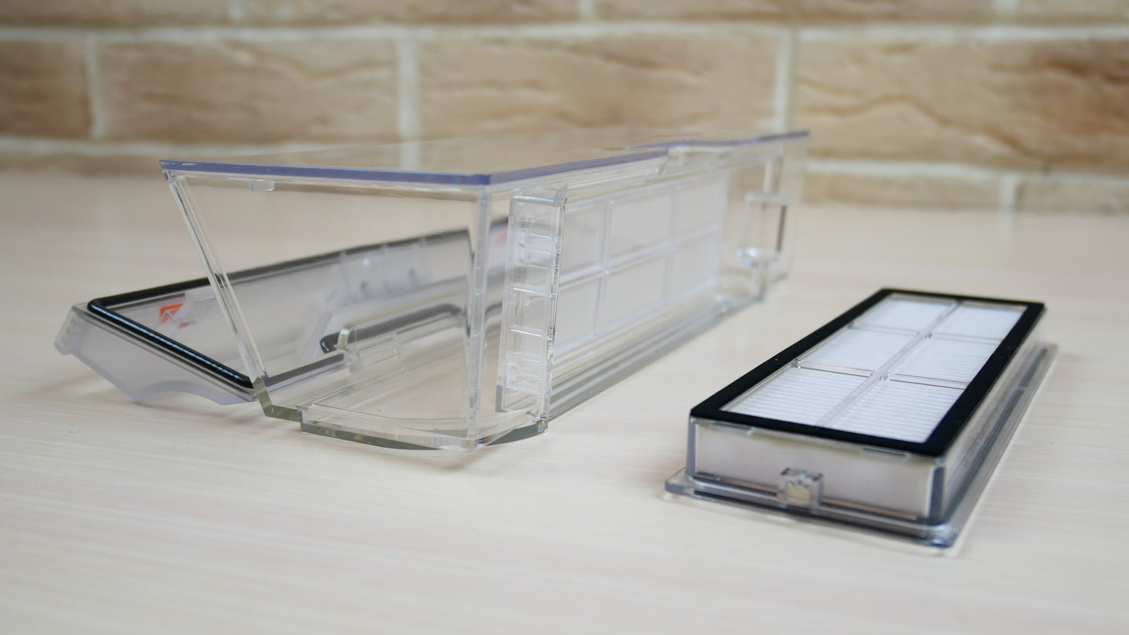 Dulkių surinktuvas yra po viršutiniu dangteliu. Joje telpa iki 550 ml sausų atliekų. Filtravimo sistemą sudaro tinklelio filtras ir HEPA filtras. Dulkių surinktuvo dangtelis atsidaro, kad būtų lengva ištuštinti.