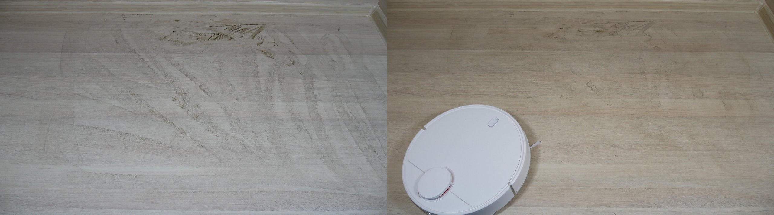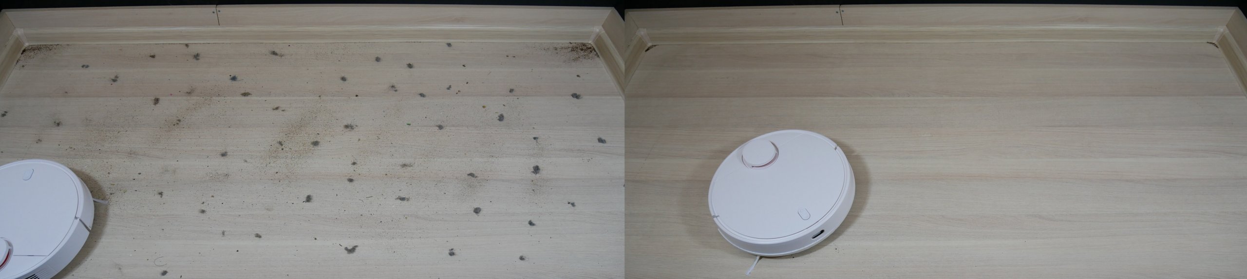Laminuotų grindų cheminis valymas yra geras. Robotas dulkių siurblys sugebėjo surinkti nuo grindų didžiąją dalį šiukšlių. Tai apėmė ne tik smulkias buitines šiukšles, bet ir naminių gyvūnėlių plaukus bei plaukus. Kampuose liko tik nedidelis kiekis šiukšlių, kur beveik visi rinkoje esantys apvalūs robotai nesugeba efektyviai išvalyti. Šiek tiek naminių gyvūnėlių plaukų ir plaukų pateko į centrinį šepetį. Didžioji dalis šiukšlių pateko į dulkių konteinerį. Bandymas sėkmingai išlaikytas!