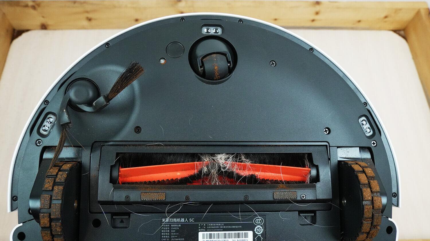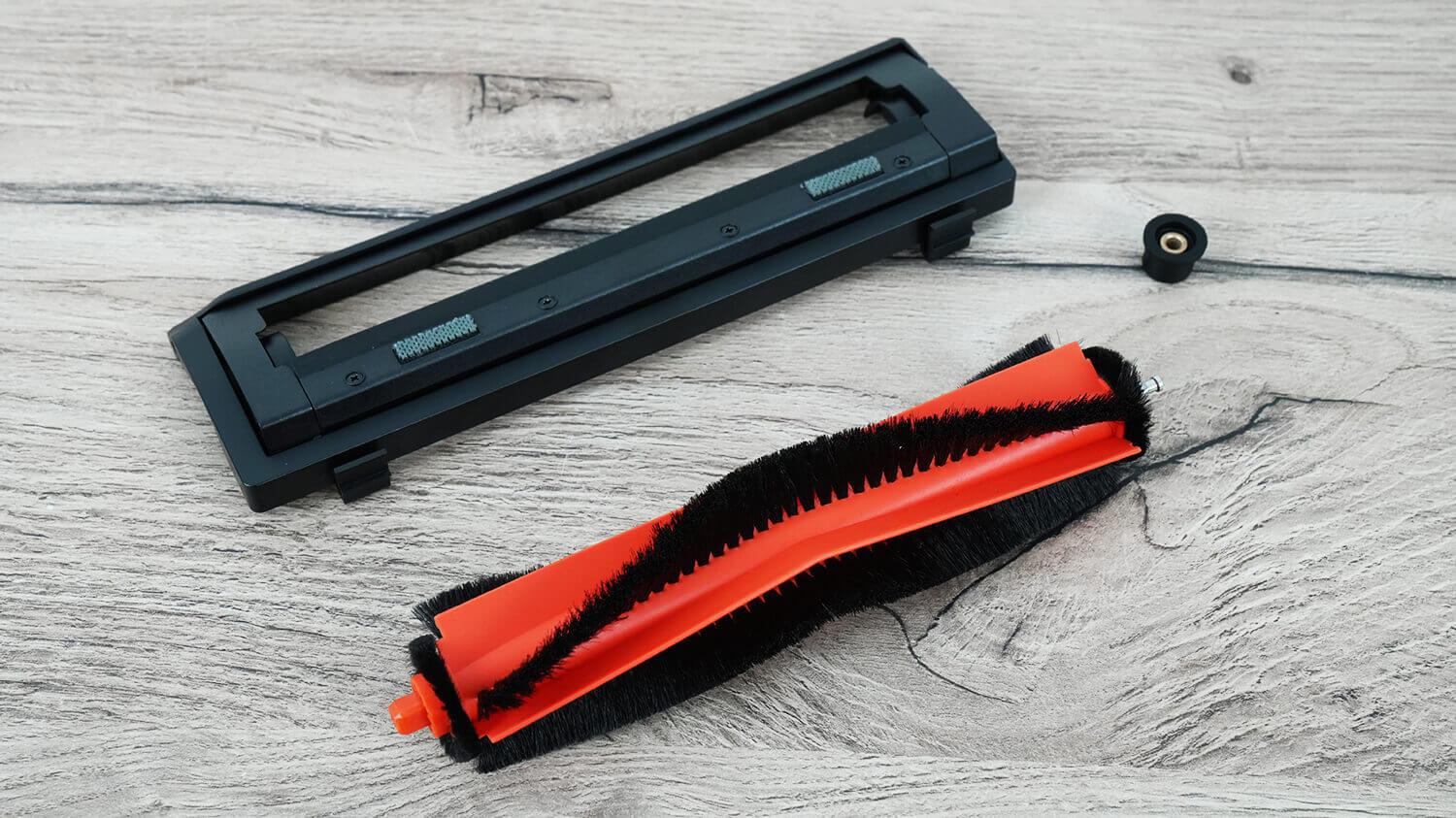 Pažvelkime į valymo modulio būklę. Šoninis šepetys yra visiškai švarus ir be plaukų, o tai yra pagrindinis jo privalumas. Tačiau centrinis šepetys yra susivėlęs plaukais ir naminių gyvūnėlių plaukais, ko gana tikėtina.