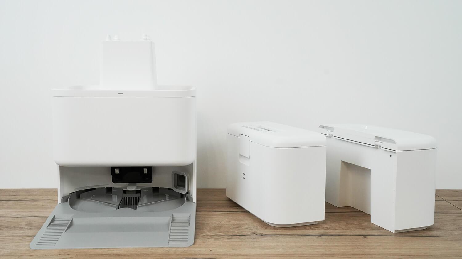 - Kaip įprasta „Xiaomi“, surinkimo kaina sumažinta. Robotas neturi kilimo jutiklio, neatskiriamo centrinio šepečio, fiksuoto turbo šepečio bloko, įmontuoto vandens bako, automatinio ploviklio maišymo funkcijos ir vandens šildymo stotelėje.