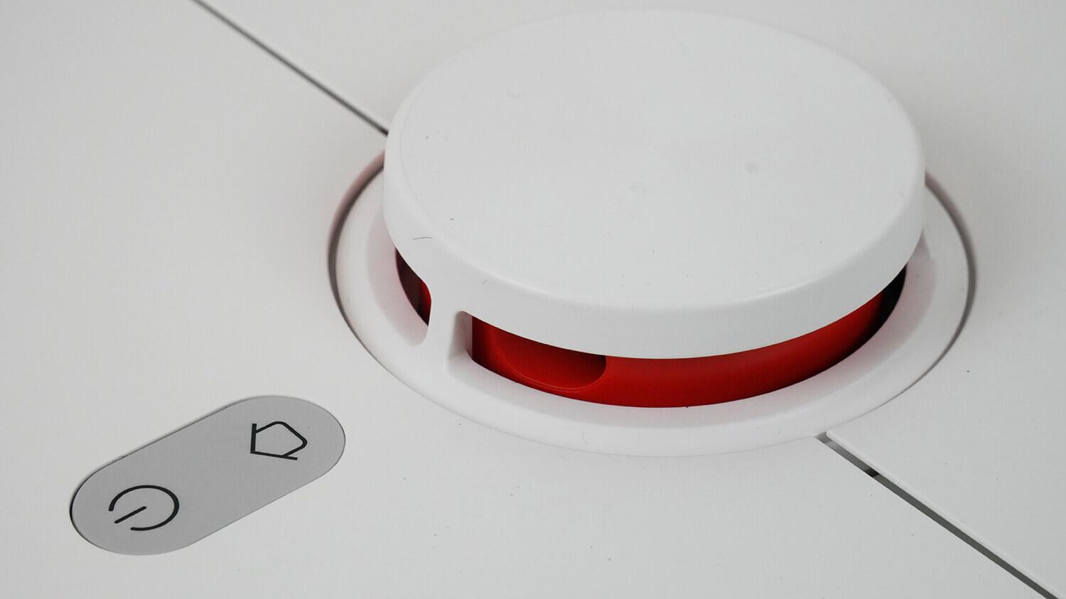 Lidaras turi spyruoklinį dangtelį, kad robotas neužstrigtų po baldais. Šalia jo yra du mechaniniai valdymo mygtukai.