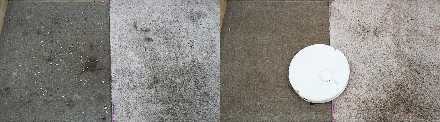 Kalbant apie kilimų valymą, robotas kruopščiai valo trumpo plauko kilimus. Tačiau vidutinio plauko kilimuose šepečiai yra mažiau efektyvūs surenkant šiukšles, iš dalies dėl to, kad centrinis šepečių blokas neplūduriuoja, o tai sumažina siurbimo galią. Be to, objektų aptikimo sistema gali atpažinti plaukelius kaip kliūtį, todėl robotas verčia vengti tam tikrų kilimo vietų. Trumpai tariant, vidutinio plauko kilimai nėra jo stiprioji pusė.