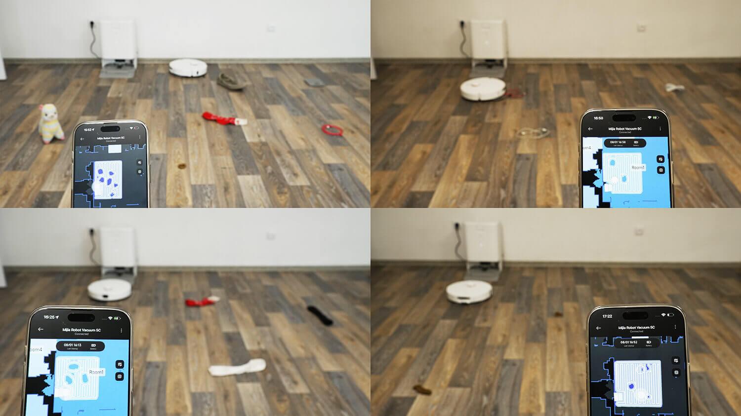 Tačiau tikroji siurbimo galia nuvilia. „Tyliu“ ir „Standartiniu“ režimais robotas negalėjo išvalyti net 2 mm tarpo. „Padidintu“ ir „Turbo“ režimais robotas pasiekė dalinį 2 mm rezultatą, todėl jo siurbimo galia yra gana vidutinė. Palyginimui, Xiaomi Mijia M40s parodė 10 mm rezultatą ir M40 Man pavyko išvalyti visas šiukšles nuo 14 mm.