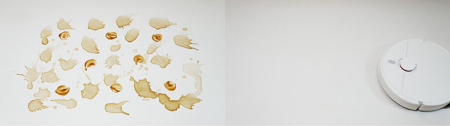 Kalbant apie sunkiai įveikiamas dėmes, robotas sugebėjo pašalinti net pridžiūvusias kavos ir padažo dėmes. Keista, bet dėmėms pašalinti prireikė tik šešių perbraukimų, o tai yra labai geras rezultatas, prilygstantis aukščiausios klasės konkurentams. Be to, nereikia šildyti vandens ar pilti ploviklio, o servetėlės – paprastos. Nuostabu!