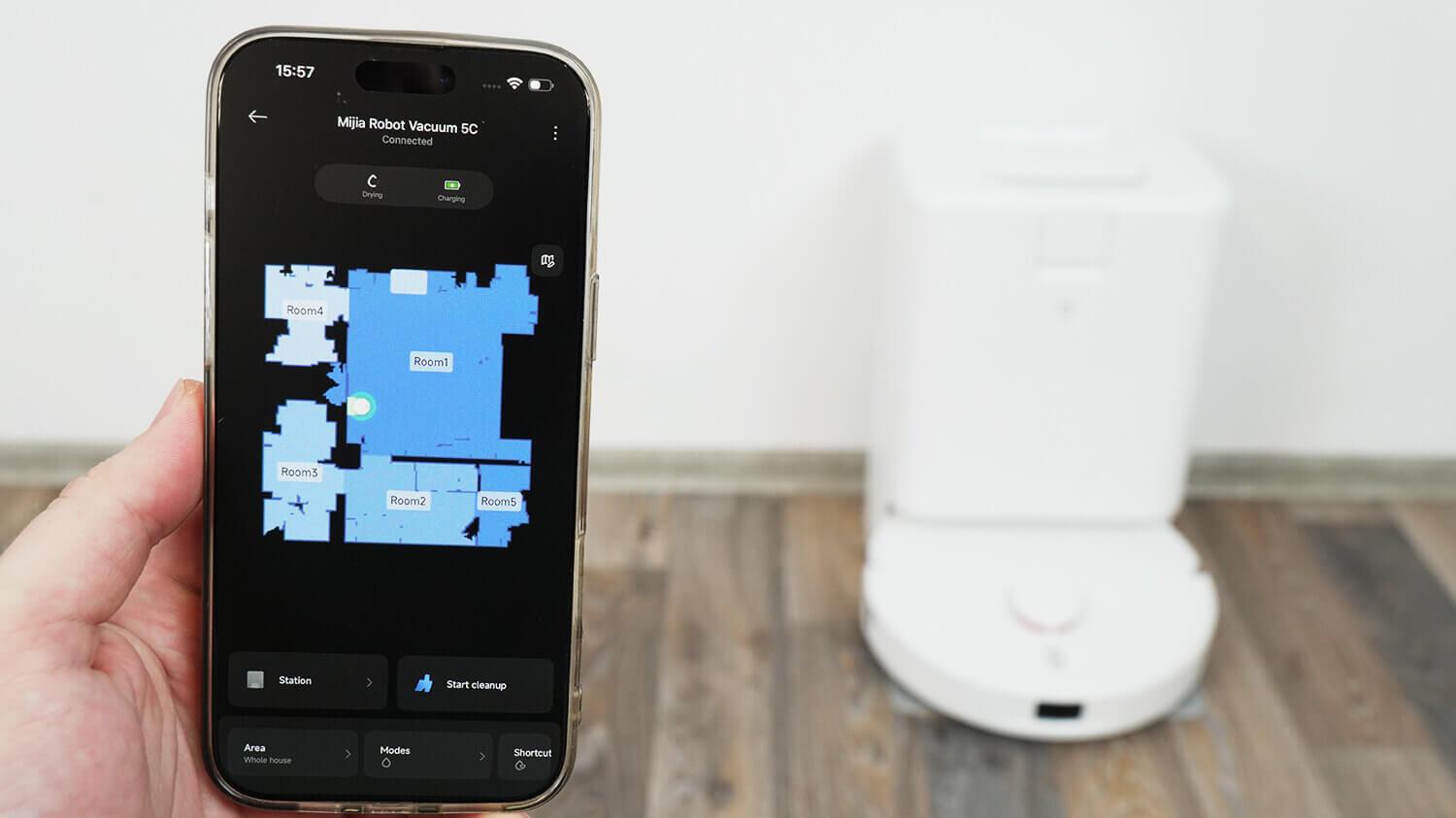 Kalbant apie valdymą, robotas dulkių siurblys yra skirtas Kinijos rinkai, todėl prie „Mi Home“ jungiasi per Kinijos regioną. Regioninių užraktų nėra, tad nesijaudinkite. Rašymo metu sąsaja yra anglų kalba, o tai nėra idealu. Robotas kalba kiniškai. Internete yra aprašymų, kaip lokalizuoti balso pranešimus, tačiau rašymo metu tai galima tik „Android“ išmaniuosiuose telefonuose.