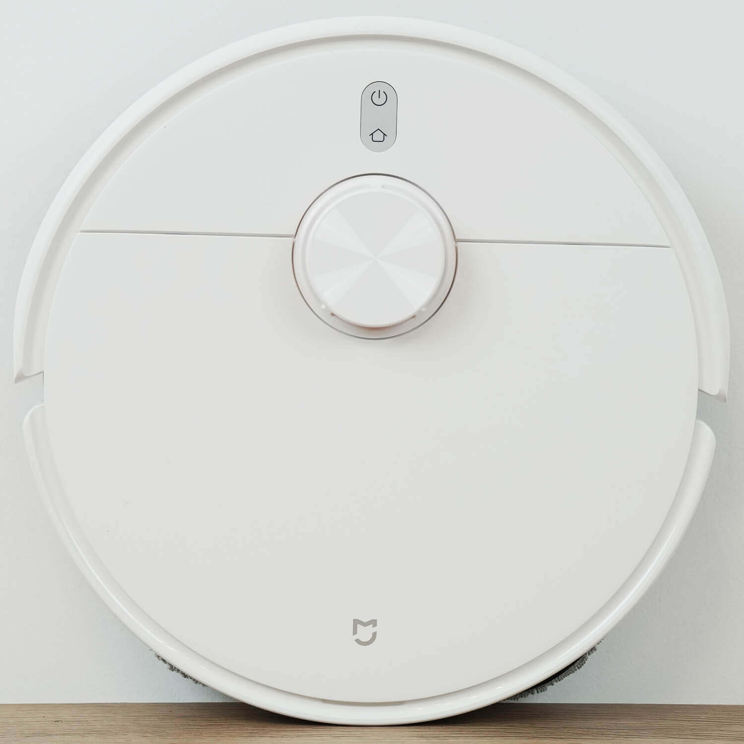 Dabar pažvelkime į „Xiaomi Mijia 5C“ dizainą. Pats robotas dulkių siurblys yra apvalus ir baltos spalvos.