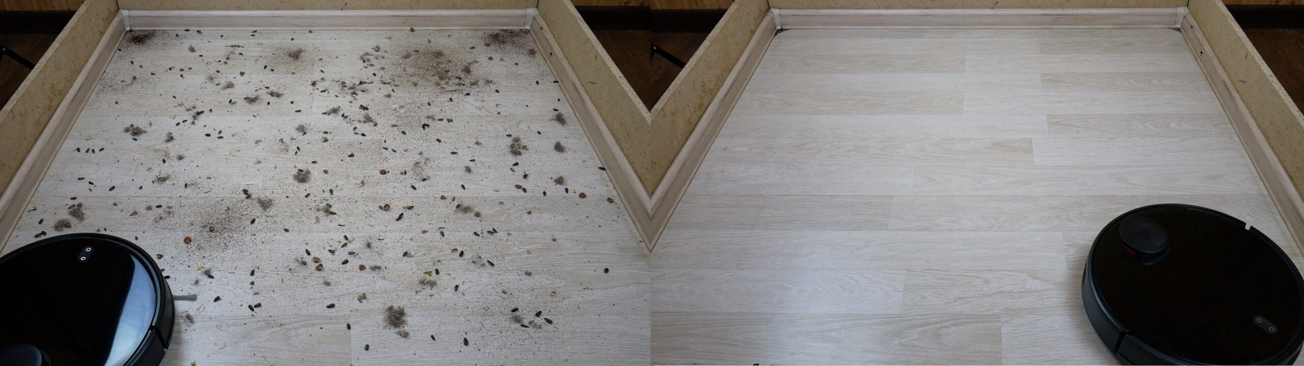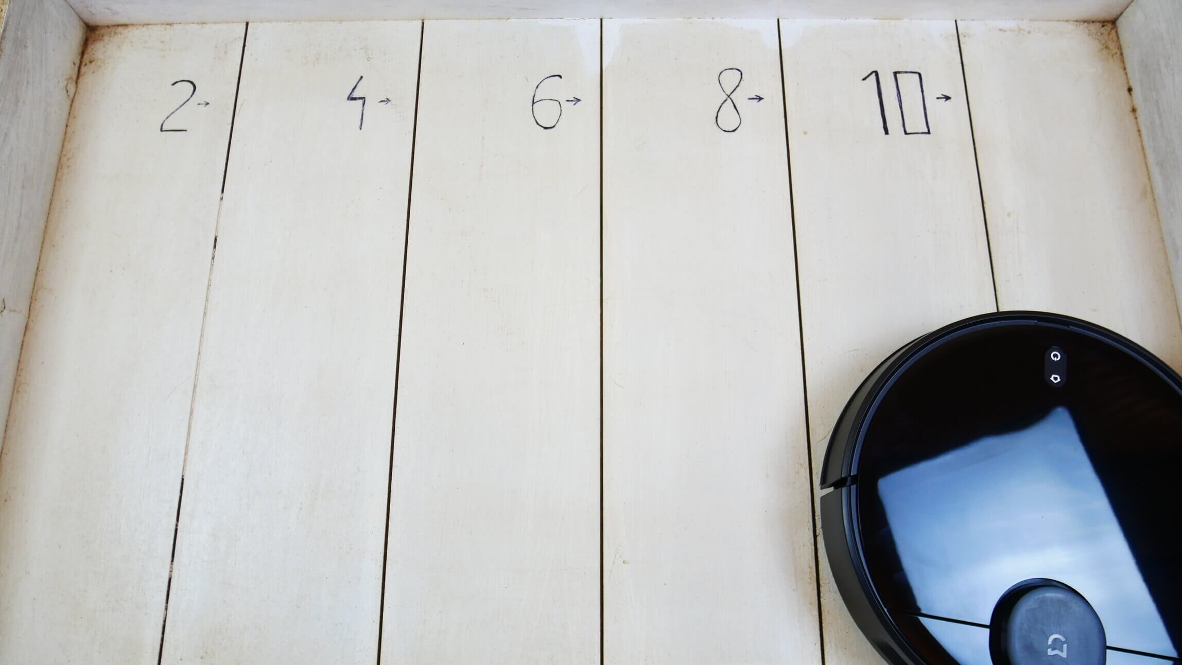 Laminuotų grindų šiukšlių surinkimo kokybė puiki. Robotas visiškai surinko šiukšles ant grotelių, palikdamas tik nedidelį kiekį kampuose dėl apvalios formos. Nedidelis kiekis plaukų pateko į šoninį šepetį, o labai mažas – į centrinį. Didžioji dalis šiukšlių pateko į dulkių konteinerį. Bandymas sėkmingai išlaikytas!
