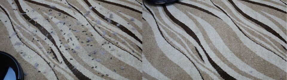 Kilimų valymo kokybė yra vidutinė. Robotas po kiekvieno praėjimo gali palikti šiek tiek šiukšlių, o norint viską išvalyti, jam reikia kelis kartus pereiti tą pačią vietą. Taigi, kilimai nėra jo stiprioji pusė.