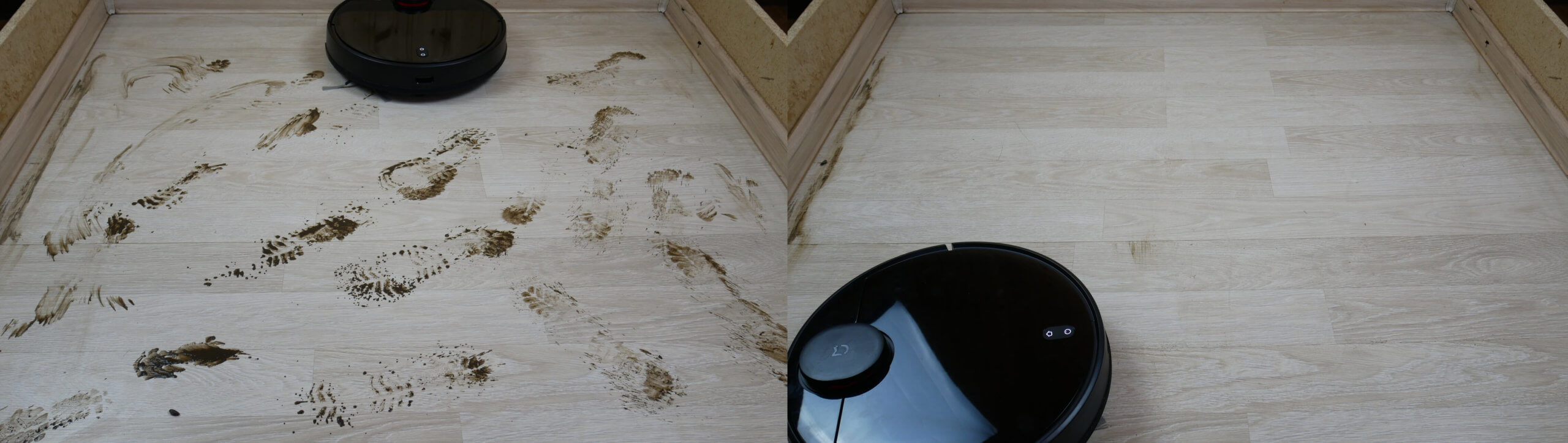 Tačiau šlapio valymo efektyvumas yra puikus. „Xiaomi Mijia LDS“ gali pašalinti nedideles dėmes nuo grindų, nepalikdamas praktiškai jokių dryžių. Šluostė gerai prilimpa prie grindų ir sugeria nešvarumus. Jis sėkmingai išlaikė šį testą.