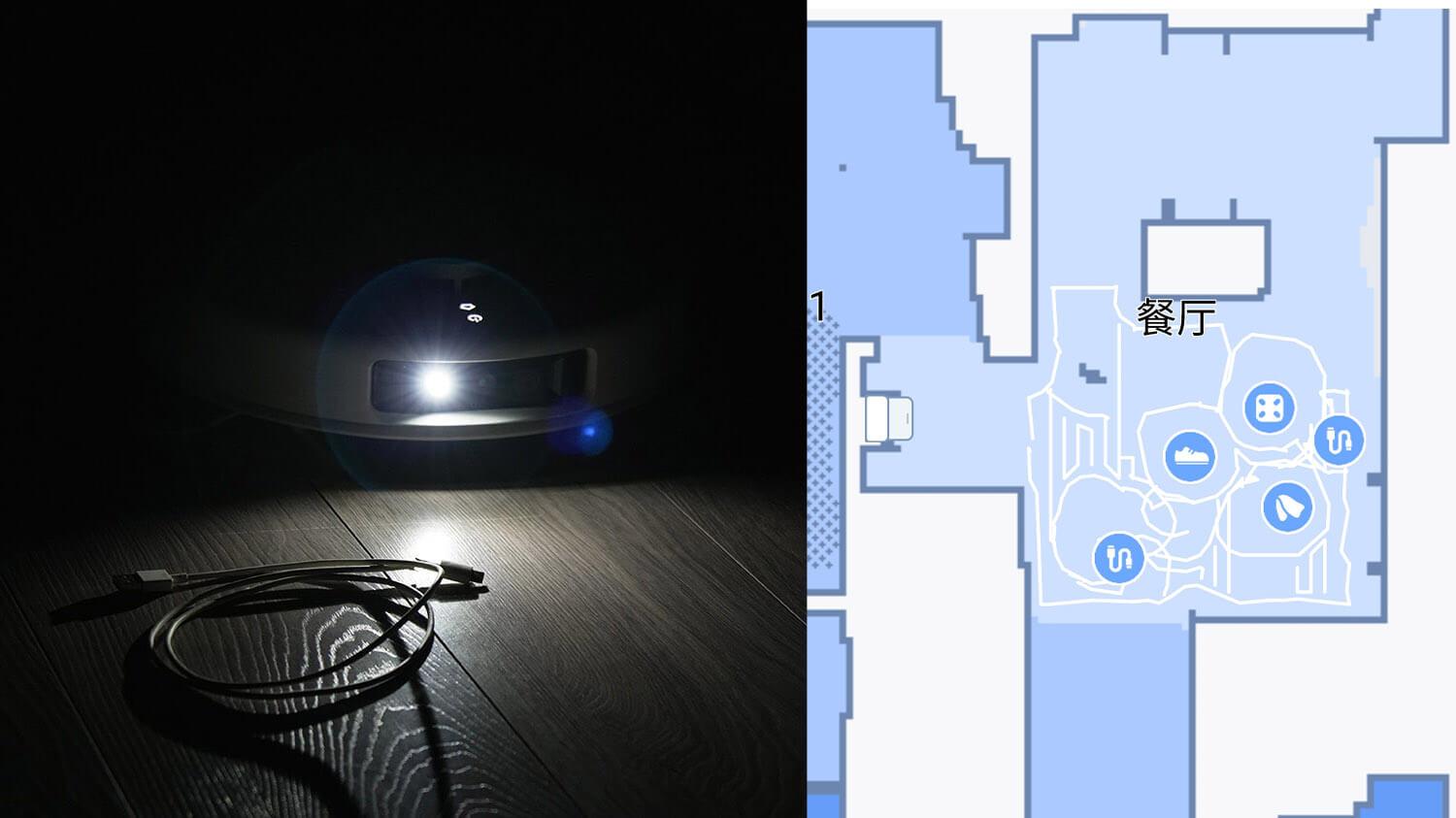 Priekyje sumontuotas jutiklis ir kamerų sistema su foniniu apšvietimu užtikrina tikslų kliūčių vengimą. LED foninis apšvietimas leidžia robotui naršyti aplink objektus ant grindų net visiškoje tamsoje.