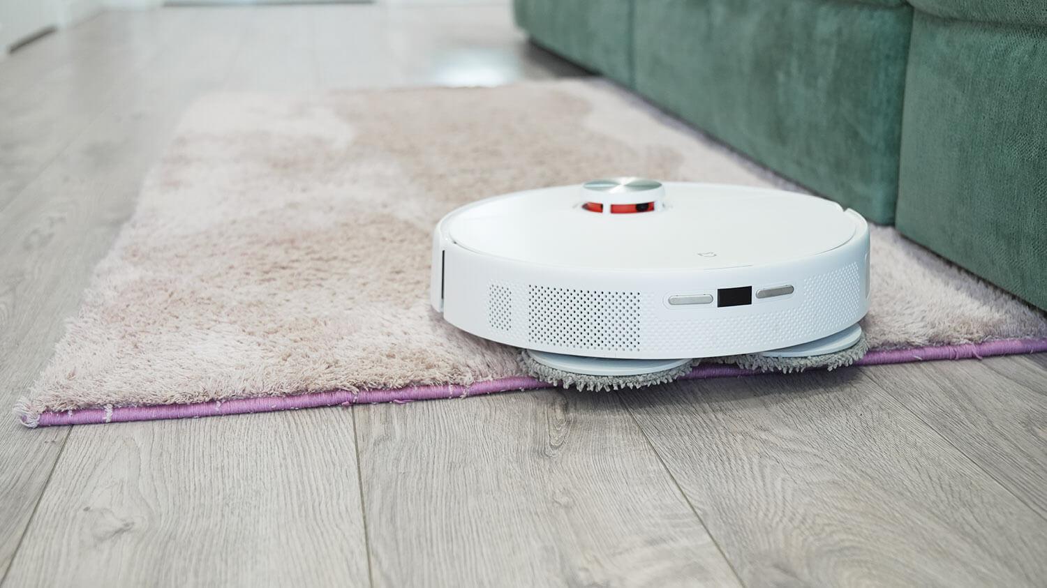 Valydami kilimus šlapiuoju būdu, galite rinktis iš dviejų roboto veikimo būdų. Pirmasis – automatiškai pakelti šluostes, kai jos patenka į kilimą, taip robotas vienu metu gali siurbti ir šluostyti grindis, palikdamas kilimus sausus ir švarius.