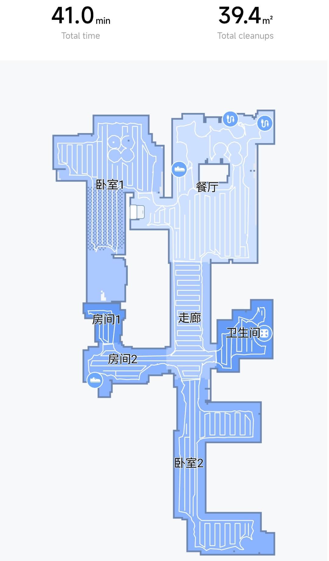 Kalbant apie navigaciją namuose, robotas dulkių siurblys valo kambarį po kambario, sekdamas perimetrą, o tada vingiuotu raštu. Kas 10 kvadratinių metrų, kaip nustatiau, jis grįžta į stotelę ir išskalauja valymo šluostes, o tada tęsia valymą nuo ten, kur baigė. Galiausiai butas buvo išvalytas trimis tarpiniais apsilankymais stotelėje. Nebuvo jokių neišvalytų vietų, o šio modelio navigacija yra tokia pat gera, kaip ir jo pirmtako.