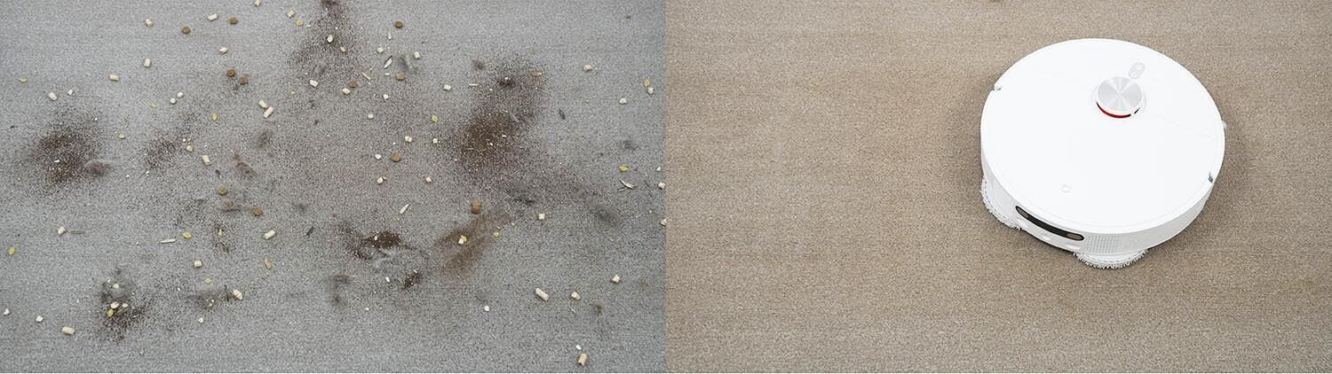 Siurbimo galia puiki. Robotas sugebėjo išvalyti šiukšles iš 10 mm gylio tarpo, todėl jį drąsiai galima vadinti galingu. Palyginimui, anksčiau išleistas „Xiaomi Mijia M30 Pro“ sugebėjo išvalyti tik 2 mm tarpą.