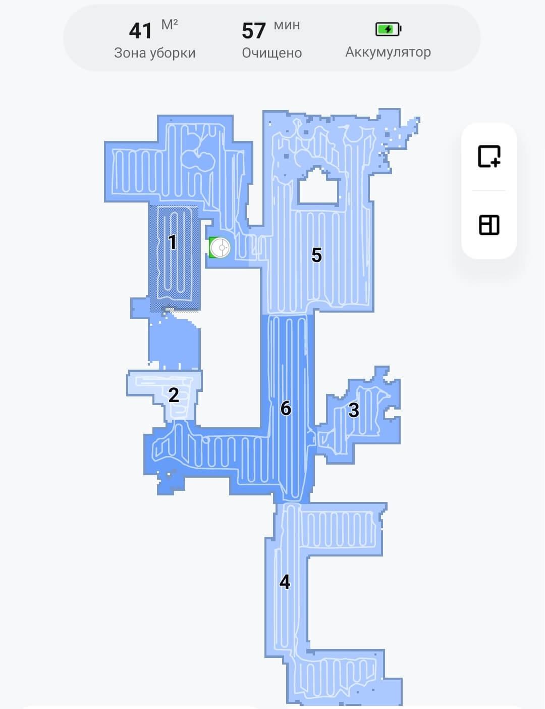 Kalbant apie navigaciją namuose, robotas dulkių siurblys valo kambarį po kambario, sekdamas perimetrą, o tada vingiuotu raštu. Kas 15 kvadratinių metrų, kaip nustatiau, jis grįžta į stotelę ir išplauna valymo pagalvėles, o tada tęsia valymą nuo ten, kur baigė. Galiausiai butas buvo išvalytas dviem tarpiniais apsilankymais stotelėje. Nebuvo jokių neišvalytų vietų, o šio modelio navigacija yra tokia pat gera, kaip ir jo pirmtako.