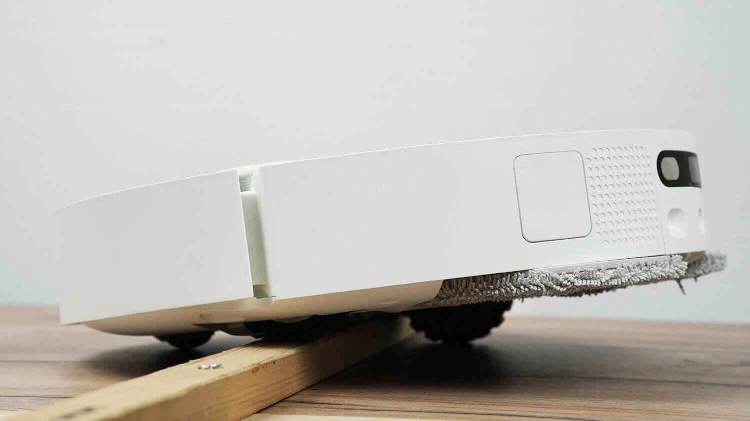 Robotas dulkių siurblys lengvai įveikia 2 cm aukščio slenksčius, pakeldamas valymo šluostes. Tai didelis privalumas!