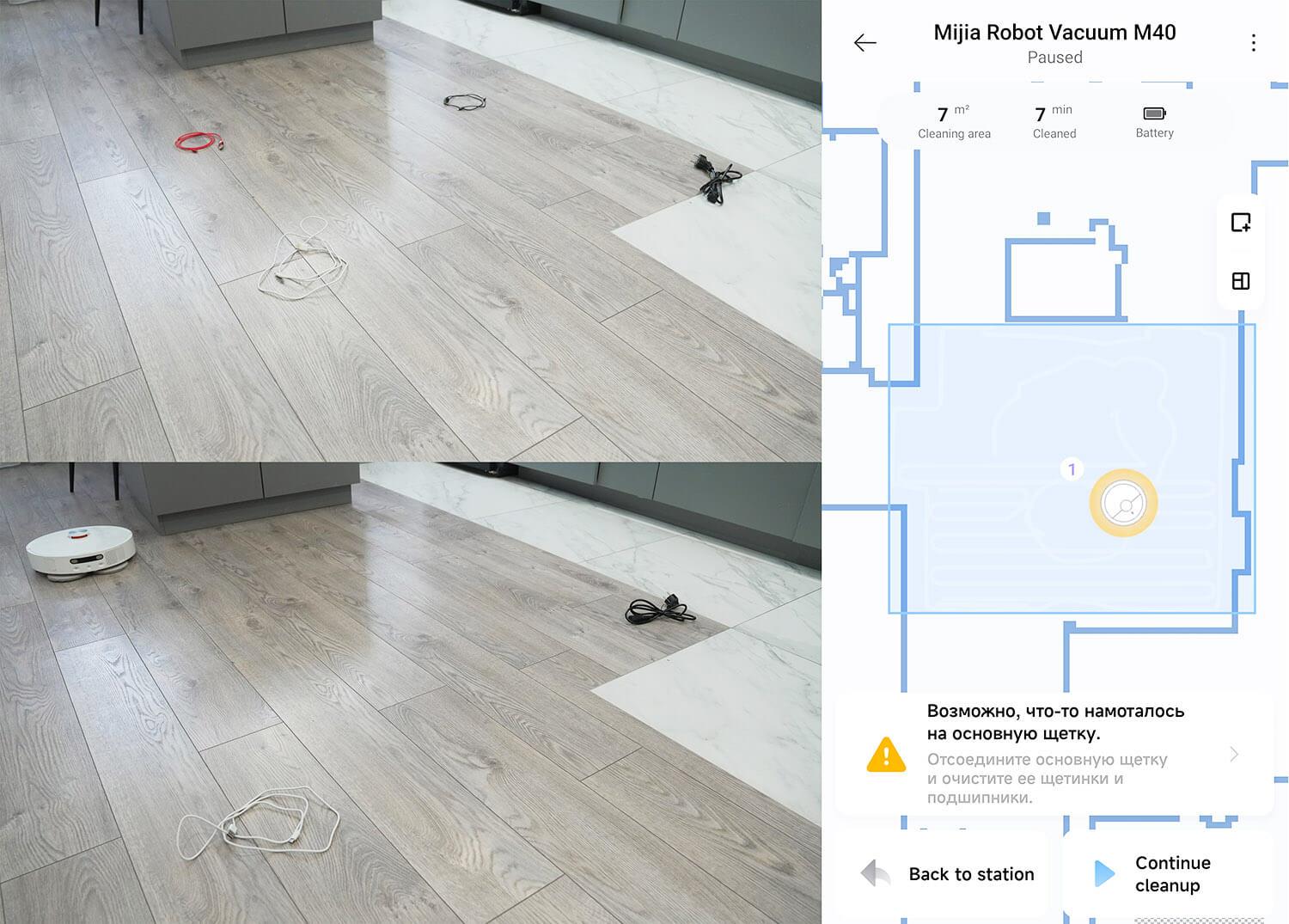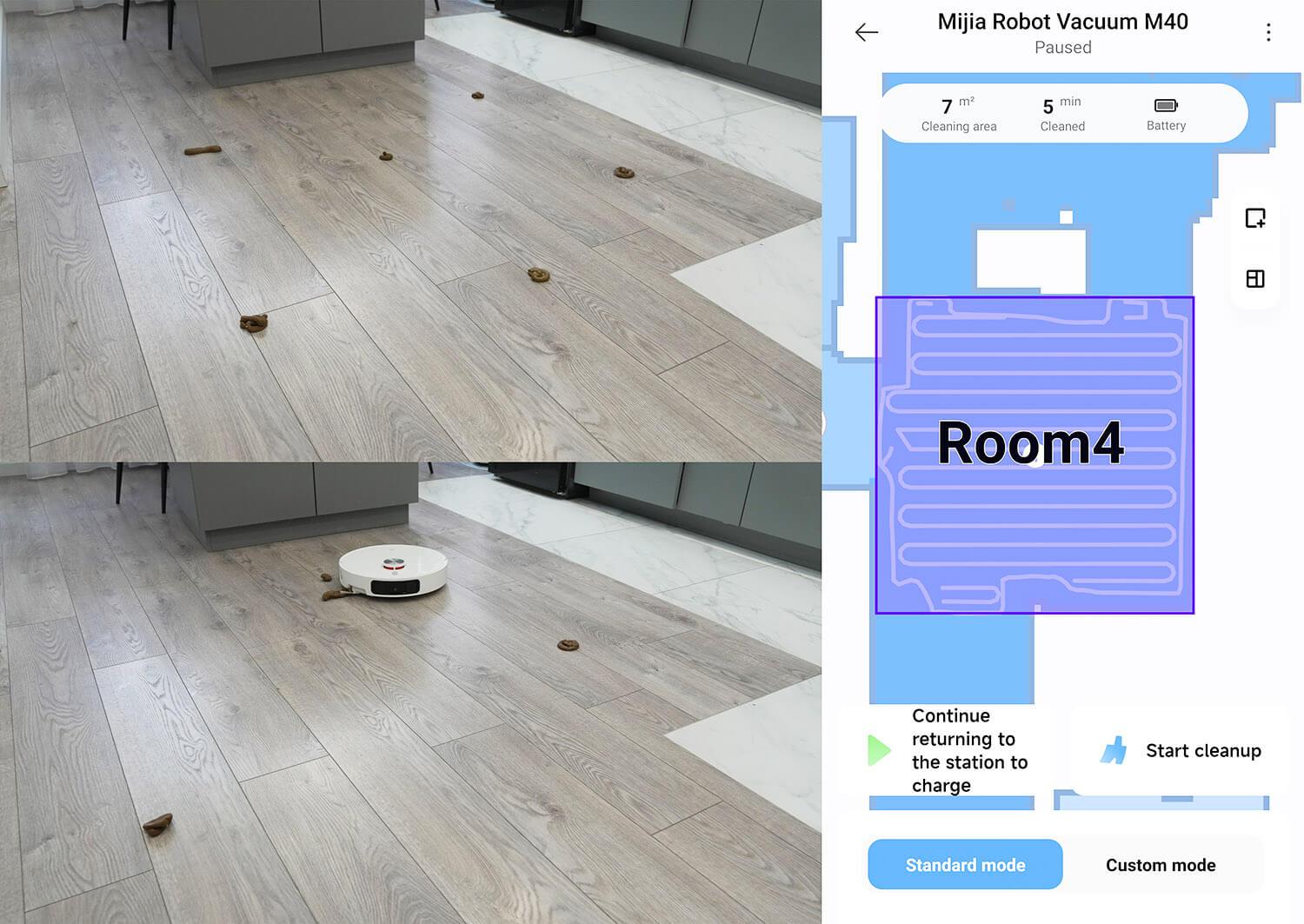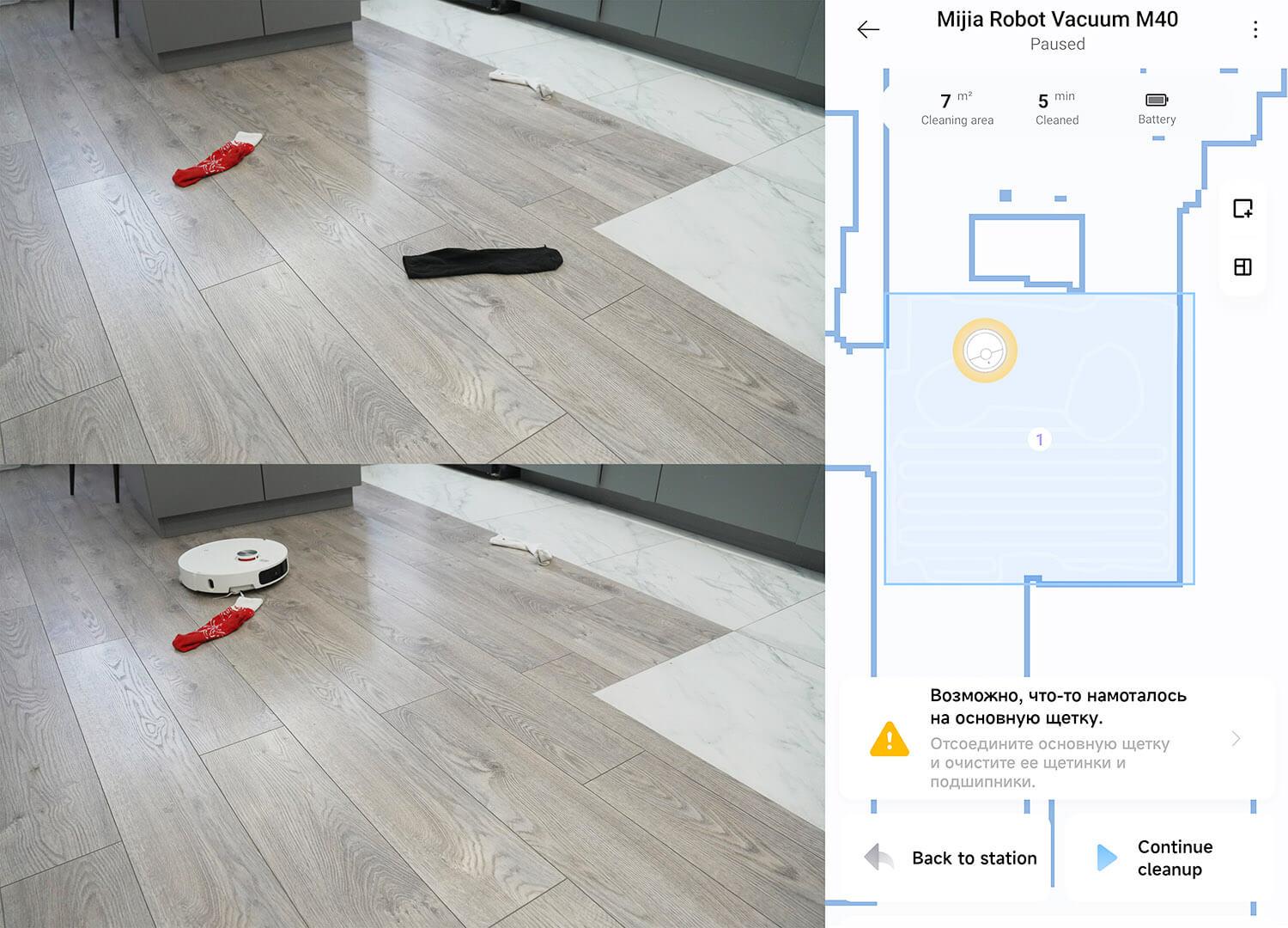 Visiškoje tamsoje rezultatai, kaip ir tikėtasi, dar blogesni. Taigi galiu teigti, kad objektų aptikimo sistema dar toli gražu nėra tobula ir ją reikia gerokai patobulinti. Nepaisant to, robotas valo tiksliau nei jo konkurentai be jokios sistemos. Taip pat turėčiau atkreipti dėmesį, kad „Xiaomi Mijia M40“ neatpažįsta, o tik aptinka objektus ant grindų. Nors anksčiau išleistas... „Xiaomi Mijia M30 Pro“ įrengta objektų atpažinimo sistema.