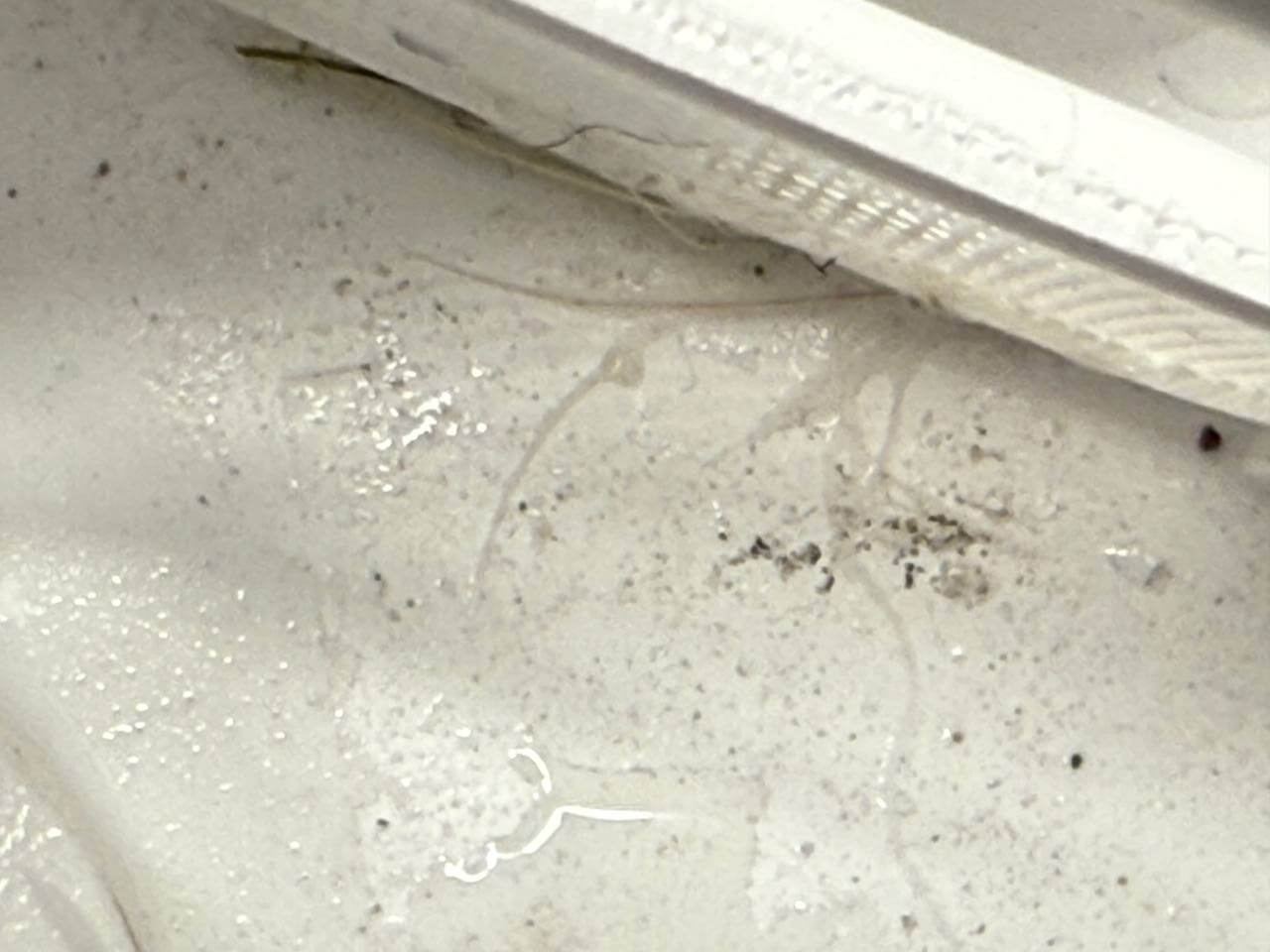 Tačiau nešvaraus vandens skyriuje matome tinklelį, kurį reikia periodiškai valyti. Tik pažiūrėkite patys: po savaitės bandymų jau matomos pirmosios nedidelės nešvarumų sankaupos: