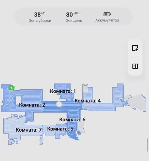 Kalbant apie navigaciją namuose, robotas dulkių siurblys valo kambarį po kambario, sekdamas perimetrą, o tada vingiuotu raštu. Kas 10 kvadratinių metrų, kaip nustatiau, jis grįžta į stotelę ir išskalauja servetėles, o tada tęsia valymą nuo ten, kur baigė. Galiausiai butas buvo išvalytas trimis tarpiniais apsilankymais stotelėje. Nebuvo jokių neišvalytų vietų; šis modelis turi puikią navigaciją!