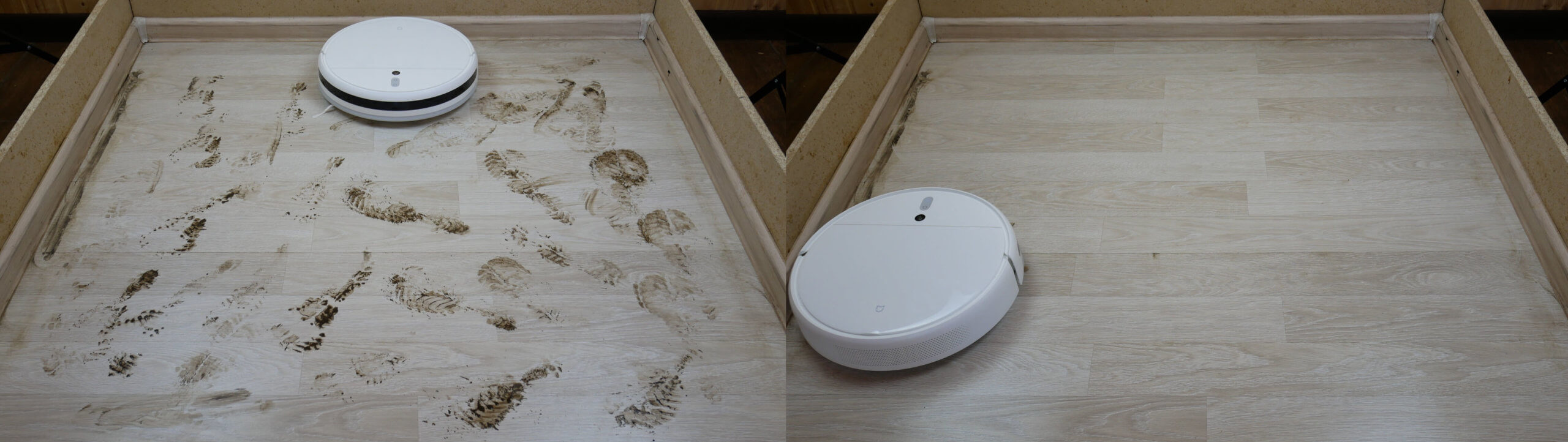 Šio modelio šlapio valymo našumas taip pat yra pakankamas. Robotas dulkių siurblys sugebėjo pašalinti šiek tiek pridžiūvusius nešvarumus nuo grindų nepalikdamas dryžių. Jis neišvalė nedidelio ploto palei grindjuostę, kaip visi panašūs modeliai, kuriuos apžvelgiau. Taigi, kalbant apie šlapio valymo našumą, jis prilygsta daugumai kitų „Xiaomi“ asortimento robotų.