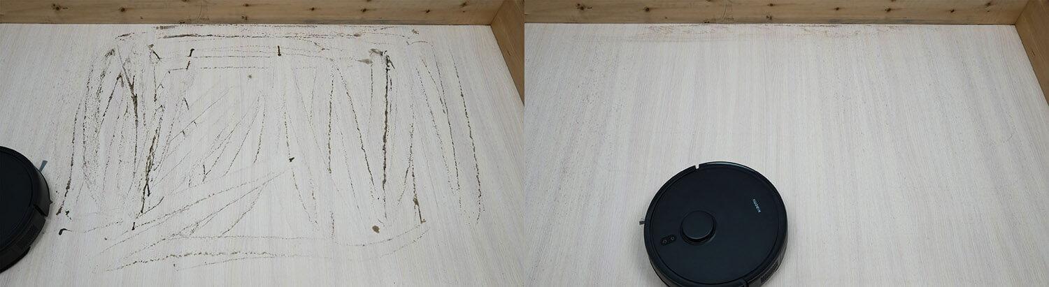 Kalbant apie siurbimo galią, „Xiaomi Robot Vacuum S20“ tyliuoju režimu neišvalė nė vieno plyšio. Standartiniu režimu jis iš dalies išvalė 2 ir 4 mm gylio plyšius. Turbo režimu robotas net iš dalies išvalė 6 mm gylio plyšį. Taigi, iš tikrųjų šio modelio siurbimo galia yra šiek tiek didesnė. Palyginimui, „S10+“ net ir maksimaliu galingumu išvalė tik iš dalies 2 mm gylio plyšius.