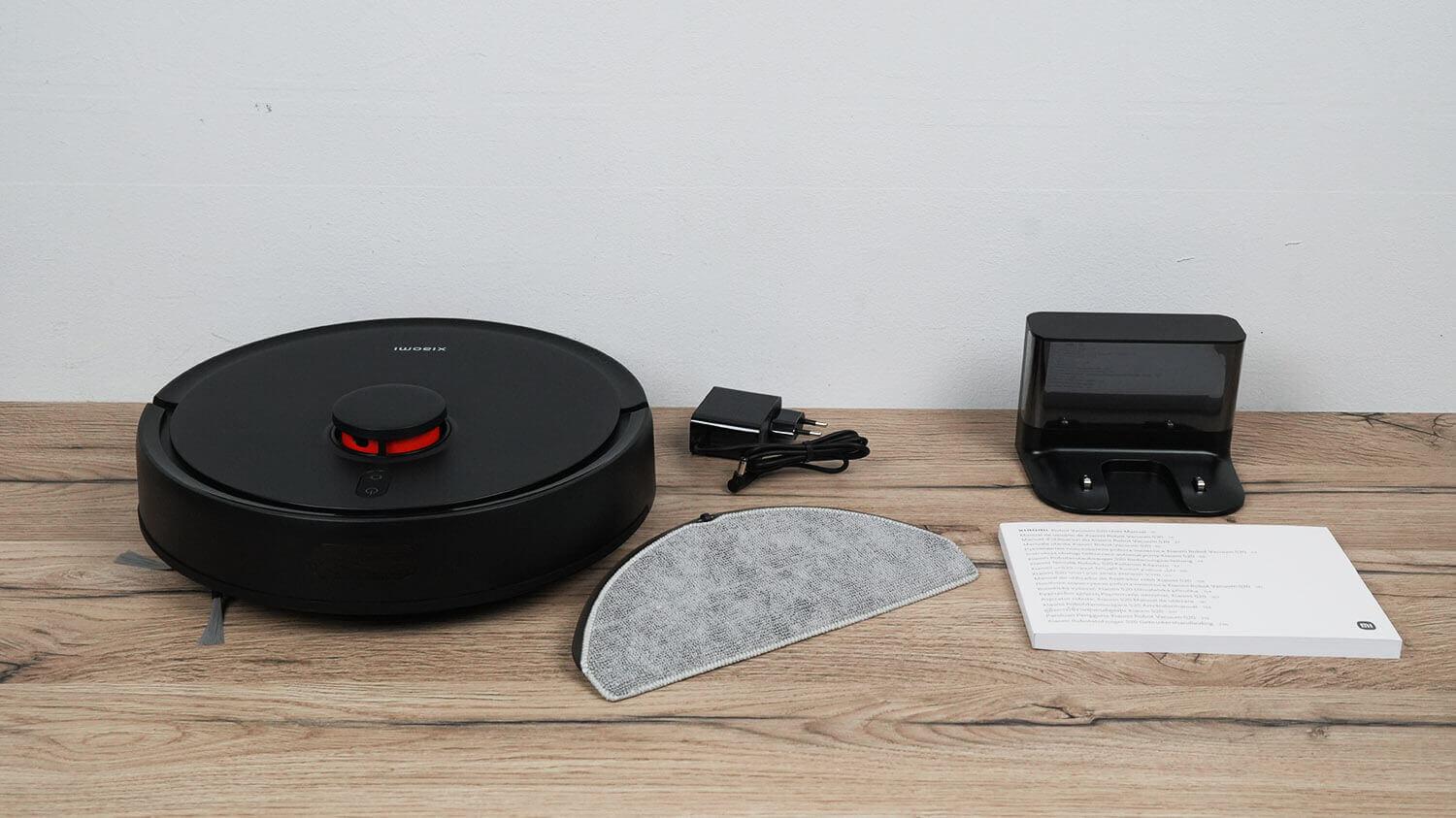 Į komplektą įeina pats robotas, įkrovimo bazė ir maitinimo adapteris, laikiklis su valymo šluoste ir į rusų kalbą išverstas naudotojo vadovas. Viskas čia standartinė.