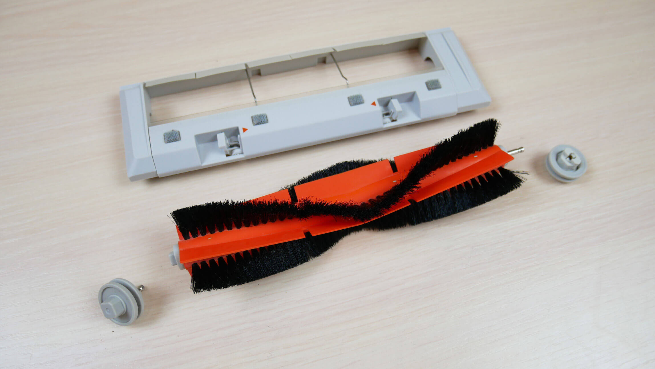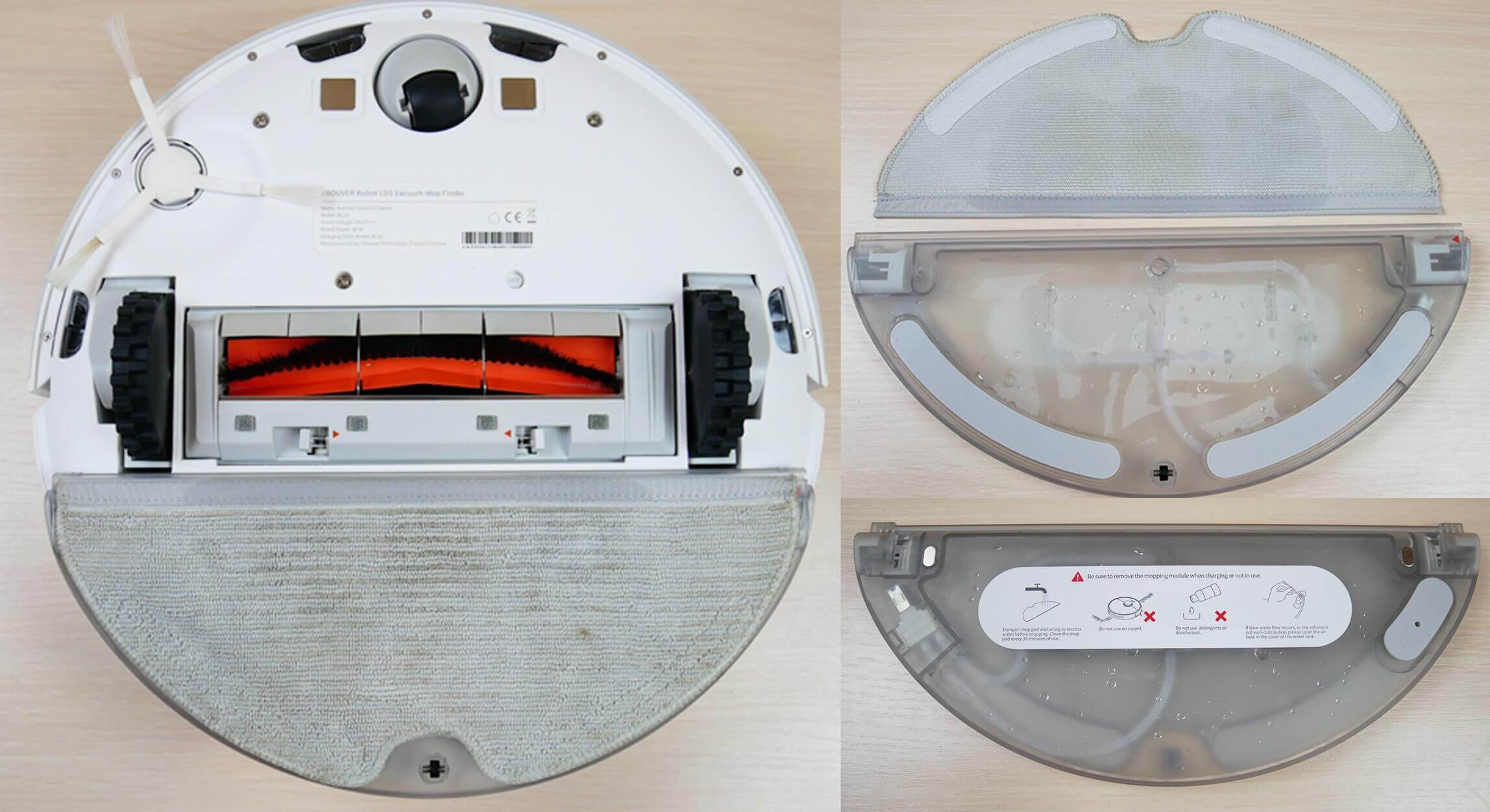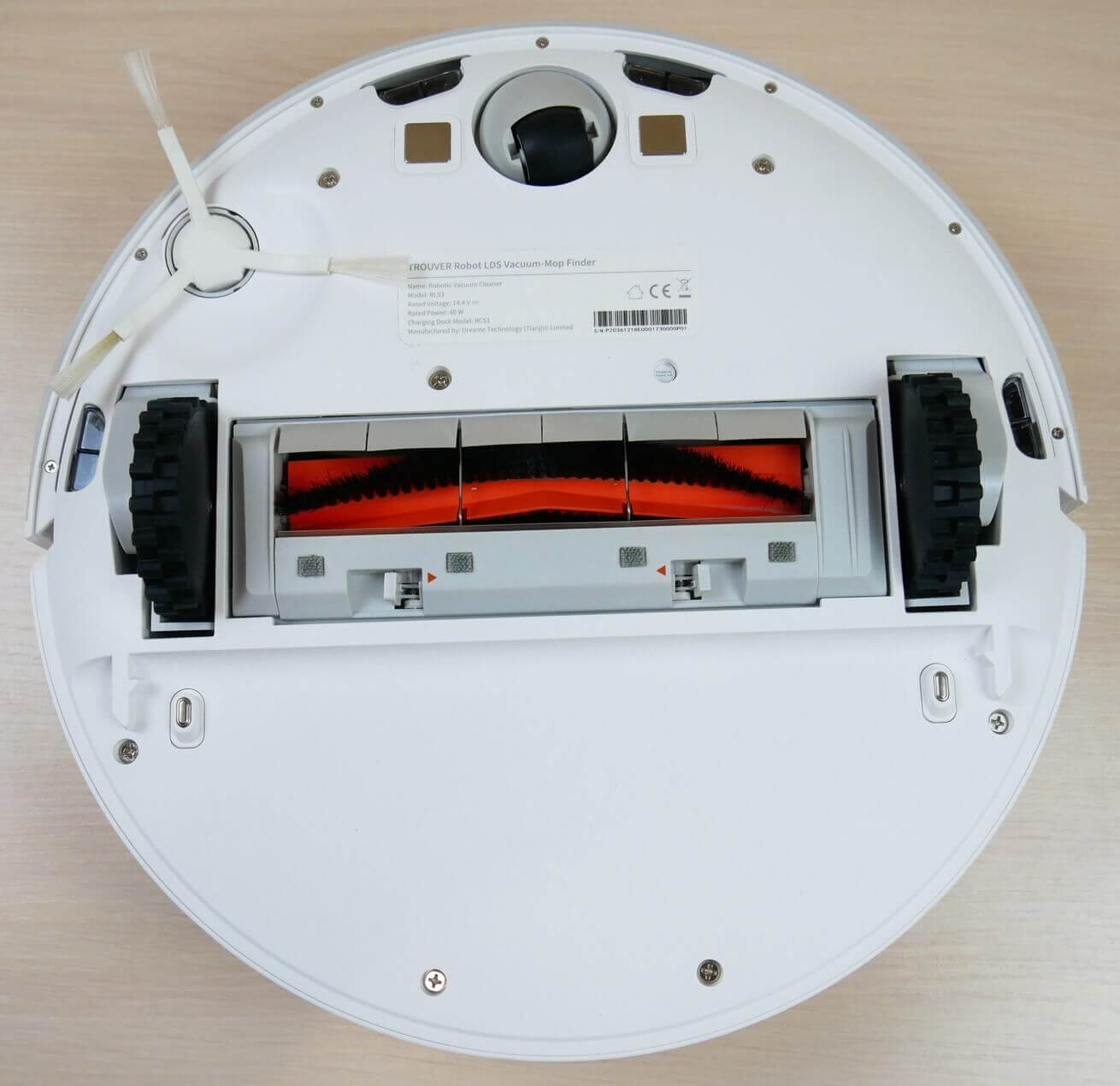 Robotas apačioje turi 4 apsaugos nuo kritimo jutiklius, o tai dar vienas skirtumas nuo „Dreame D9“, kuriame jų yra 6. Yra vienas šoninis šepetys, trijų sijų šepetys, kuris yra greitai atleidžiamas.
