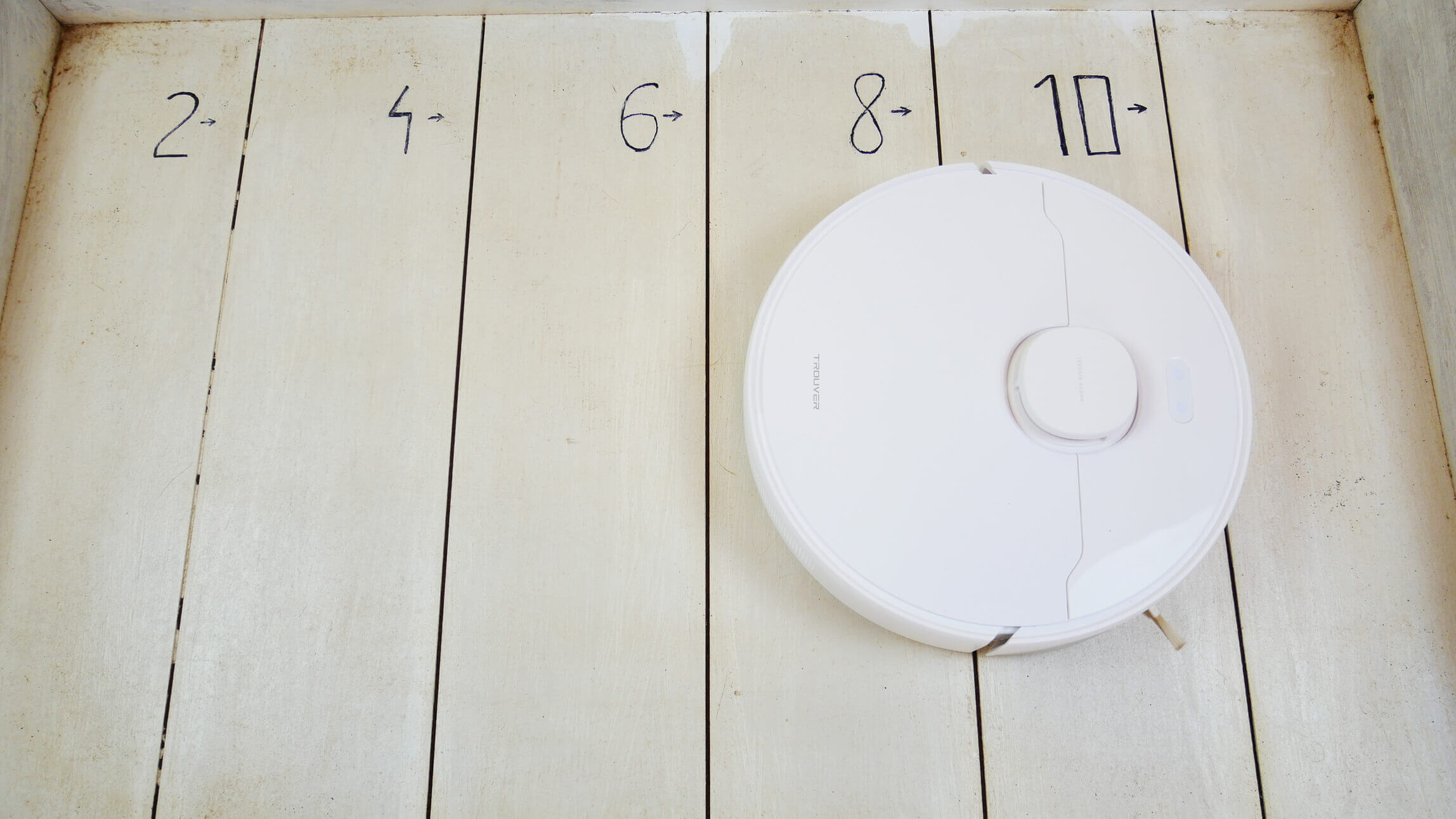 Tačiau nešvarumų šalinimo našumas nuvylė. Šis robotas-dulkių siurblys nepašalino šiek tiek išdžiūvusių nešvarumų nuo laminuotų grindų, nors jo kolegos, įskaitant „Dreamy“, susidorojo su šia užduotimi. „Truver“ šio testo neišlaikė.