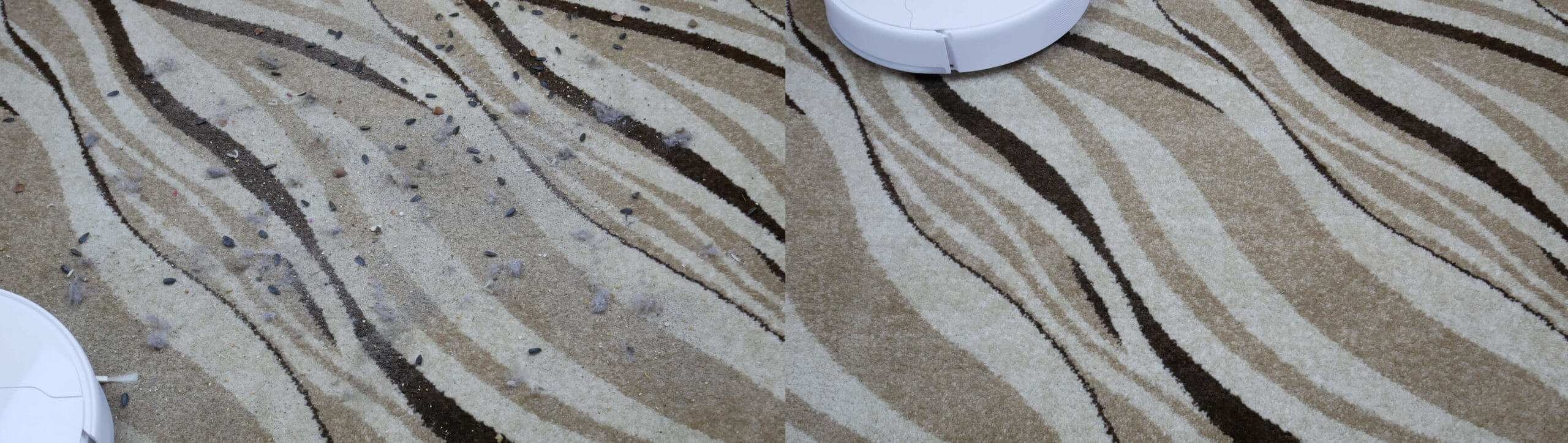 Tos pačios šiukšlės buvo išbarstytos ant kilimo, ir „TROUVER LDS Finder“ jas išvalė be jokių problemų. Kilimų valymo našumas taip pat yra geresnis nei vidutinis.