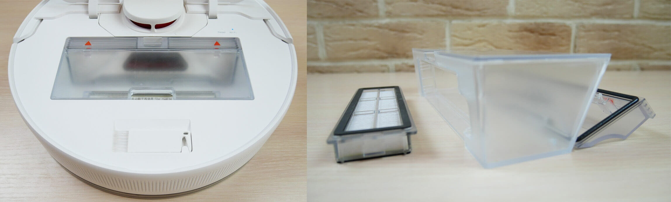 Navigacijai ir žemėlapių sudarymui naudojamas lidaro jutiklis. Lidaro dangtelis yra spyruoklinis, todėl robotas dulkių siurblys neužstringa po baldais. Valdymo skydelyje yra du mechaniniai mygtukai: paleidimas / pristabdymas ir priverstinis grįžimas į įkrovimo pagrindą. Dulkių talpykla yra po viršutiniu dangčiu, todėl valymo įrankį patogu laikyti netoliese. Talpykloje telpa iki 570 ml sausų atliekų. Filtravimo sistema yra tik HEPA; nėra tinklelio filtro.