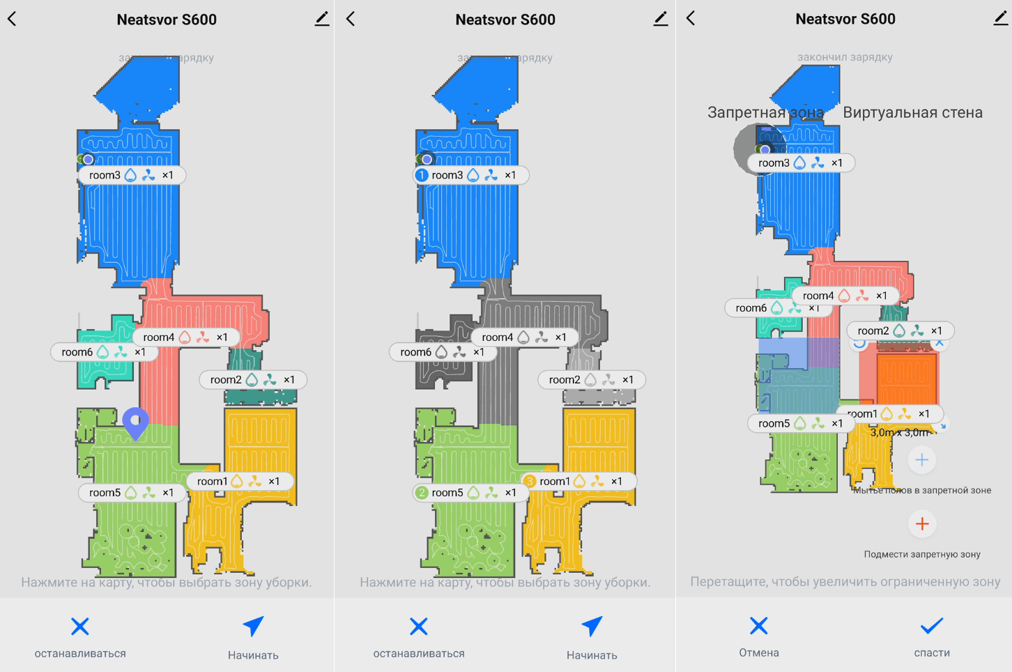 Kalbant apie navigaciją namuose, NEATSVOR S600 valo kambarį po kambarį, pirmiausia palei perimetrą, o tada vingiuotu būdu. Valymo greitis yra didelis, nelieka neišvalytų vietų. Šis testas buvo sėkmingas.