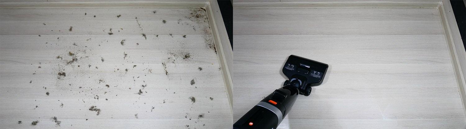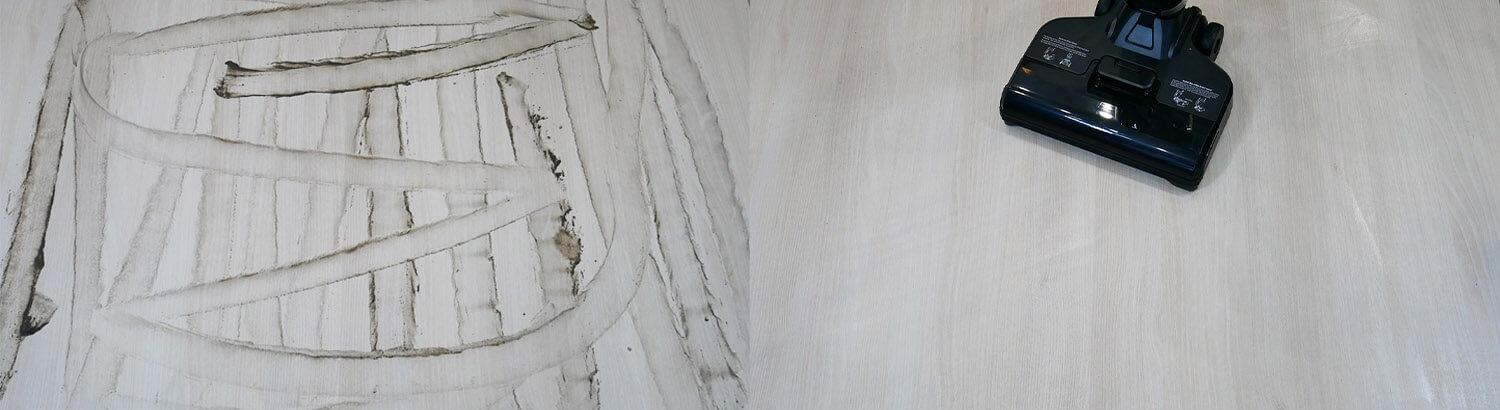 „Neatsvor T30“ taip pat gali būti naudojamas šiek tiek pridžiūvusiems nešvarumams nuo grindų valyti. Kaip matote, neliko jokių žymių ar dryžių. Grindys tampa idealiai švarios.