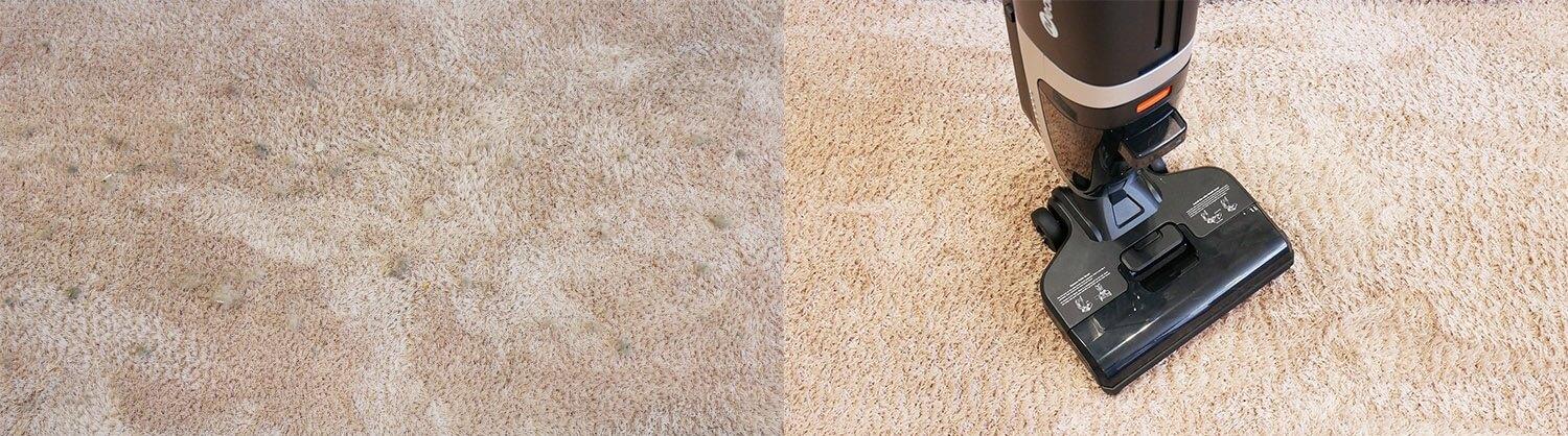Kadangi tai yra šlapio/sauso valymo dulkių siurblys, jis nepraktiškas kilimams valyti. Tačiau tai vis tiek įmanoma, jei į baką nepilate vandens arba naudojate šlapio valymo režimą, kuris tiesiog išsiurbia šiukšles nepildamas vandens. Volelis, nepaisant purios tekstūros, gali surinkti naminių gyvūnėlių plaukus, kailį ir kitas šiukšles.