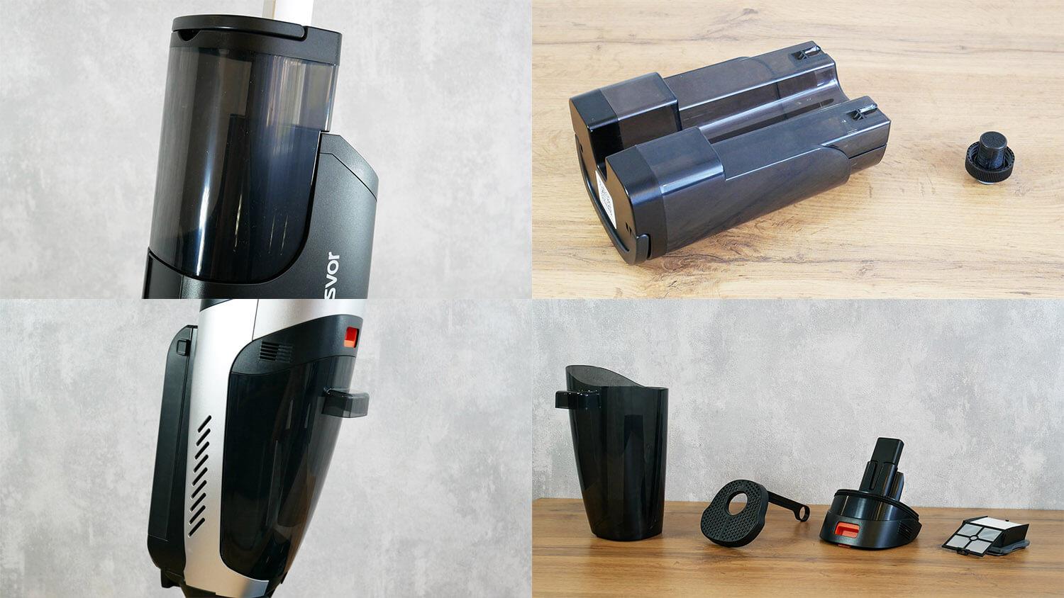Puiku, kad dulkių siurblio akumuliatorių galima išimti. Tai labai supaprastina keitimo procesą ir leidžia prailginti jo veikimo laiką įsigijus atsarginį akumuliatorių.