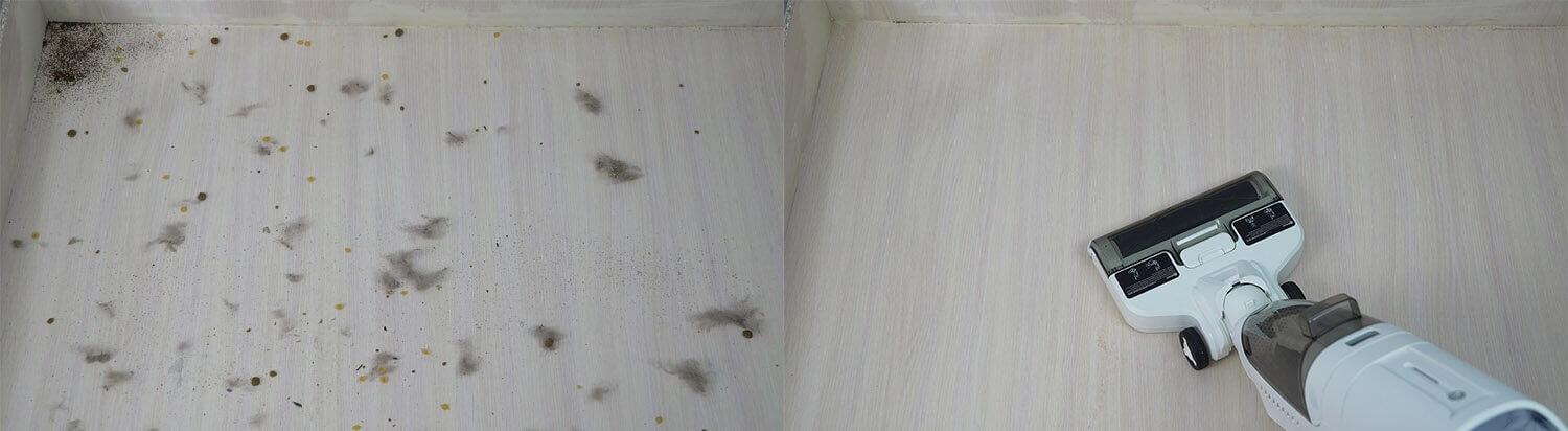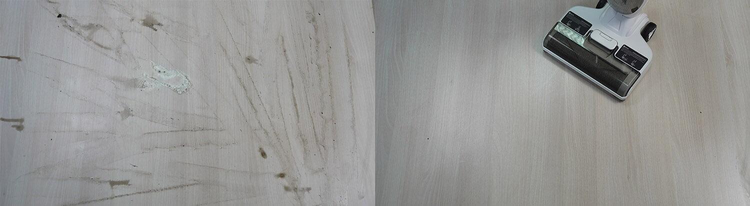 „Neatsvor T35“ taip pat gali būti naudojamas šiek tiek pridžiūvusiems nešvarumams nuo grindų valyti. Kaip matote, nepalieka jokių žymių ar dryžių. Grindys tampa idealiai švarios.