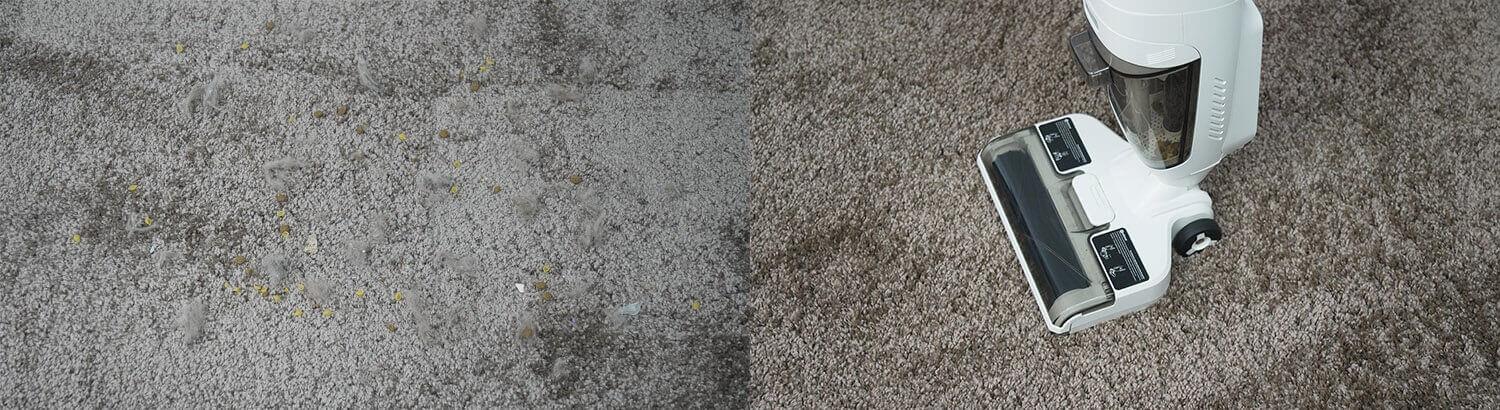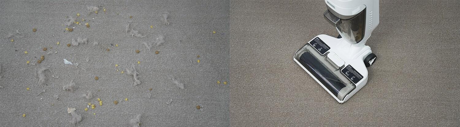 Šis dulkių siurblys pašalino net sunkiai įveikiamas, pridžiūvusias kavos ir padažo dėmes. Kaip ir su panašiais dulkių siurbliais, padažo dėmėms pašalinti prireikė šiek tiek laiko. Tiksliau sakant, dėmei pašalinti prireikė 8 minučių. Tai šiek tiek geriau nei dauguma biudžetinių ir vidutinės kainos dulkių siurblių, kurie paprastai pašalina panašias dėmes per 10 minučių. Be to, nebuvo naudojama jokia skalbimo priemonė, nes gamintojas jos neprideda.