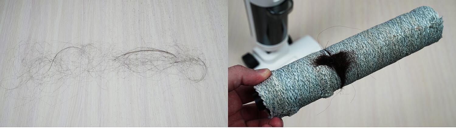 Taip pat patikrinau, ar prie volelio pritvirtintos šukos veiksmingai iššukuoja plaukus ir kailį. Ne, plaukai susipainiojo aplink volelį, o šukos jų nepašalino. Tiesą sakant, reklaminėje medžiagoje apie efektyvų plaukų šalinimą neužsimenama.