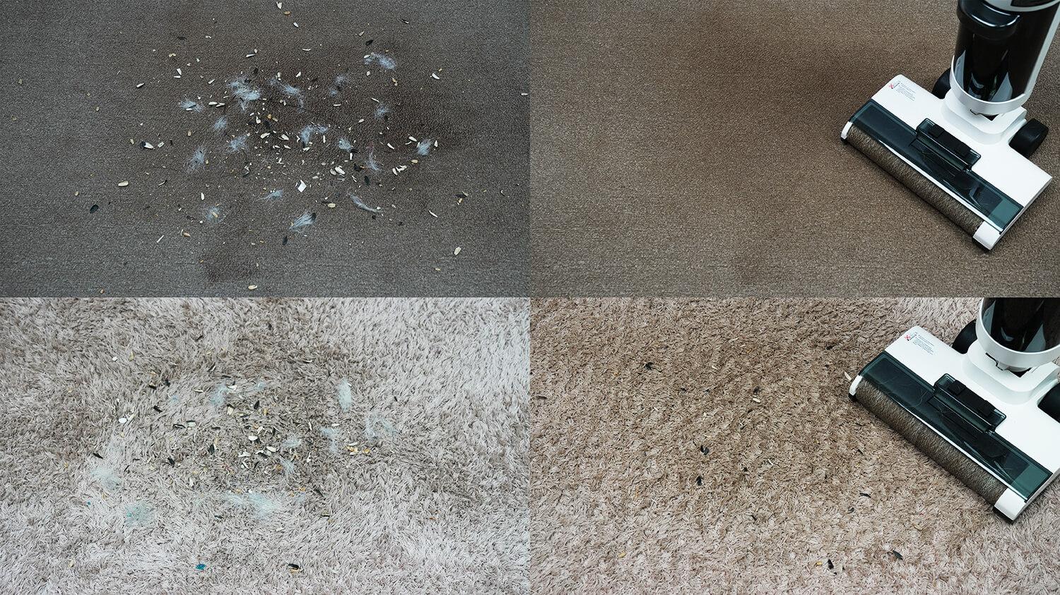 Šis šlapio/sauso valymo dulkių siurblys netinka kilimams su ilgais arba puriais sluoksniais. Dėl volelio ir siurbimo sistemos konstrukcijos jis gali surinkti šiukšles tik paviršiuje, bet nepašalina jų iš gilių sluoksnių. Tai patvirtina bandymų rezultatai: tokių kilimų valymo efektyvumas yra žymiai mažesnis nei įprastų vertikalių sauso valymo dulkių siurblių.