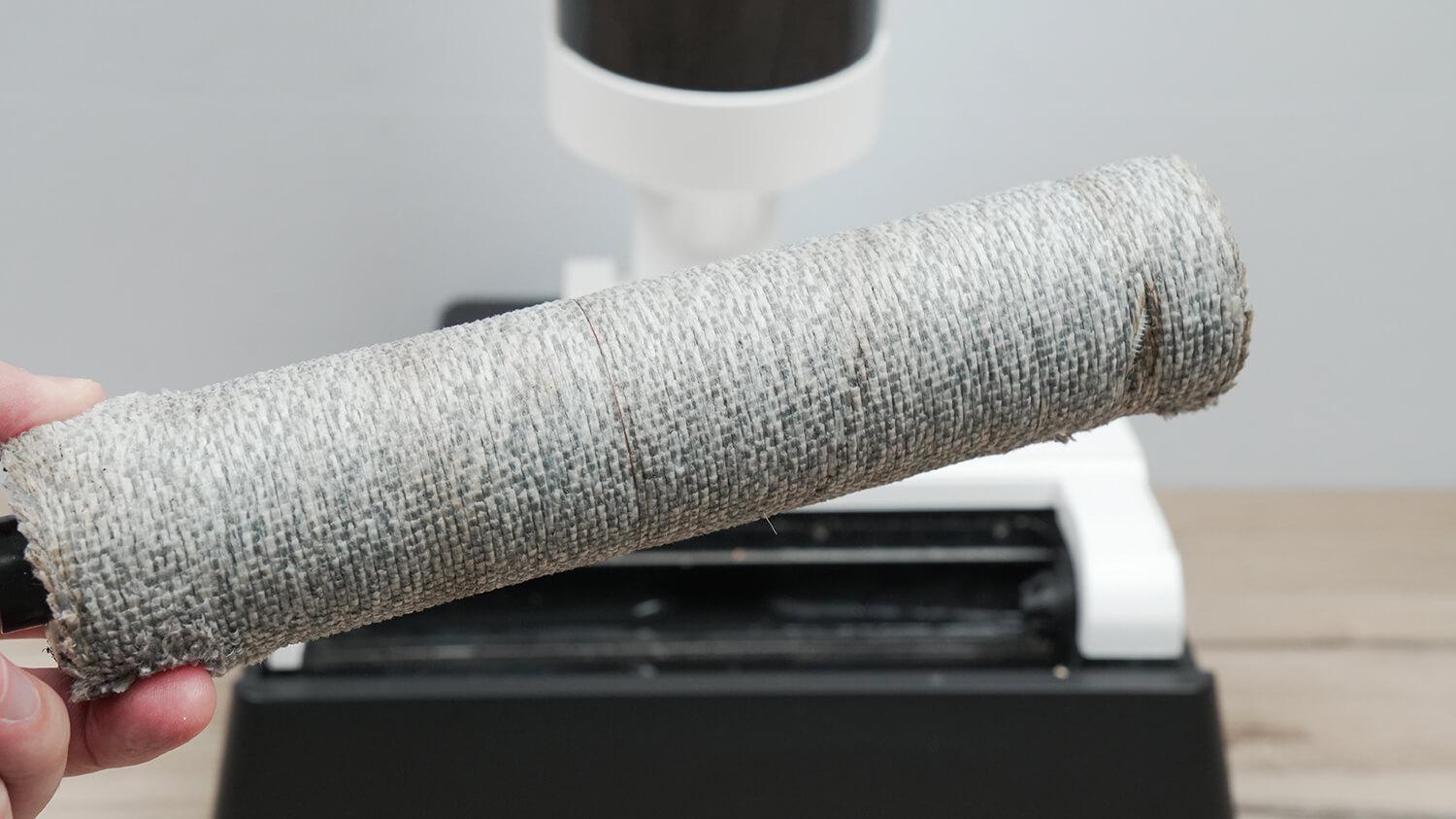 Po visų bandymų buvo patikrintas šlapio/sauso valymo dulkių siurblio savaiminio valymo našumas. Nušveitus sunkiai įveikiamas dėmes ir nešvarumus, pamatėme, kad kempinės filtras buvo gana nešvarus. Paleidome savaiminio valymo ciklą ir volelis po to tikrai buvo švaresnis, bet nepasakyčiau, kad rezultatas puikus. Prireikė kelių savaiminio valymo ciklų. Be to, sritis už volelio liko nešvari.