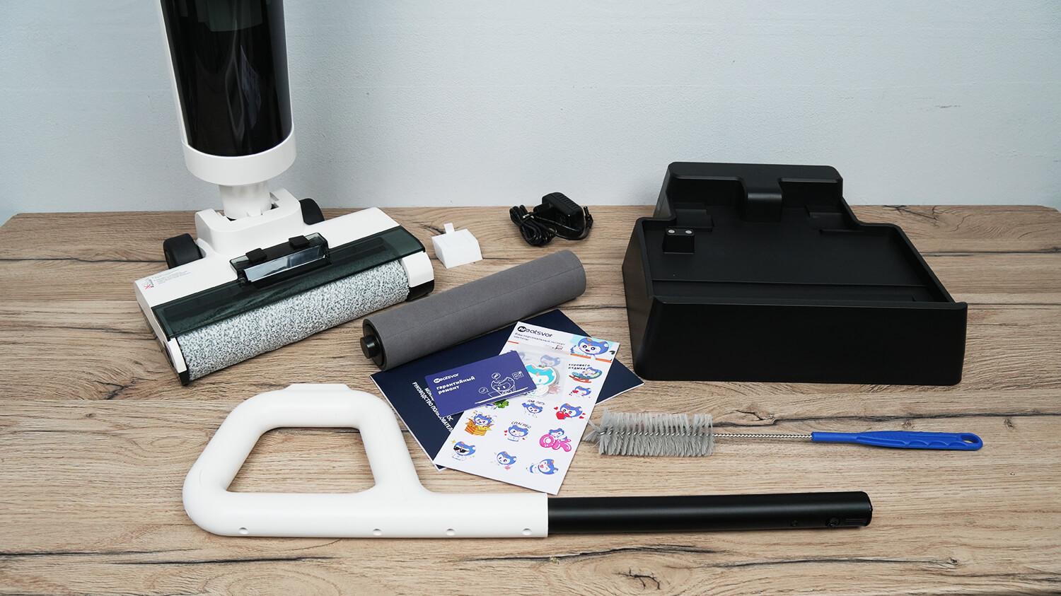 Į komplektą įeina pagrindinis įrenginys, nuimama rankena, įkrovimo ir savaiminio valymo pagrindas, maitinimo adapteris, atsarginis volelis, valymo įrankis, atsarginis HEPA filtras, naudojimo instrukcija rusų kalba ir gamintojo dovanų vokas. Jame yra firminių lipdukų rinkinys, raktų pakabukas ir informacija apie garantiją.