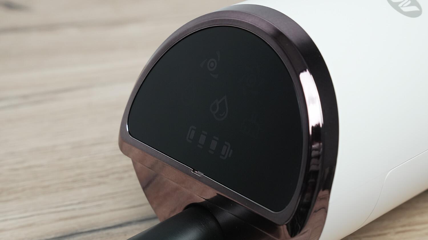 Visa informacija rodoma ekrane. Tačiau, atsižvelgiant į nedidelę dulkių siurblio kainą, jo dizainas nėra labai geras. Pirma, ryškumas labai blankus. Antra, nerodomas akumuliatoriaus įkrovos procentas. Laimei, yra garsus balso pranešimas, kuriame pateikiama informacija apie pasirinktą režimą ir galimas klaidas.