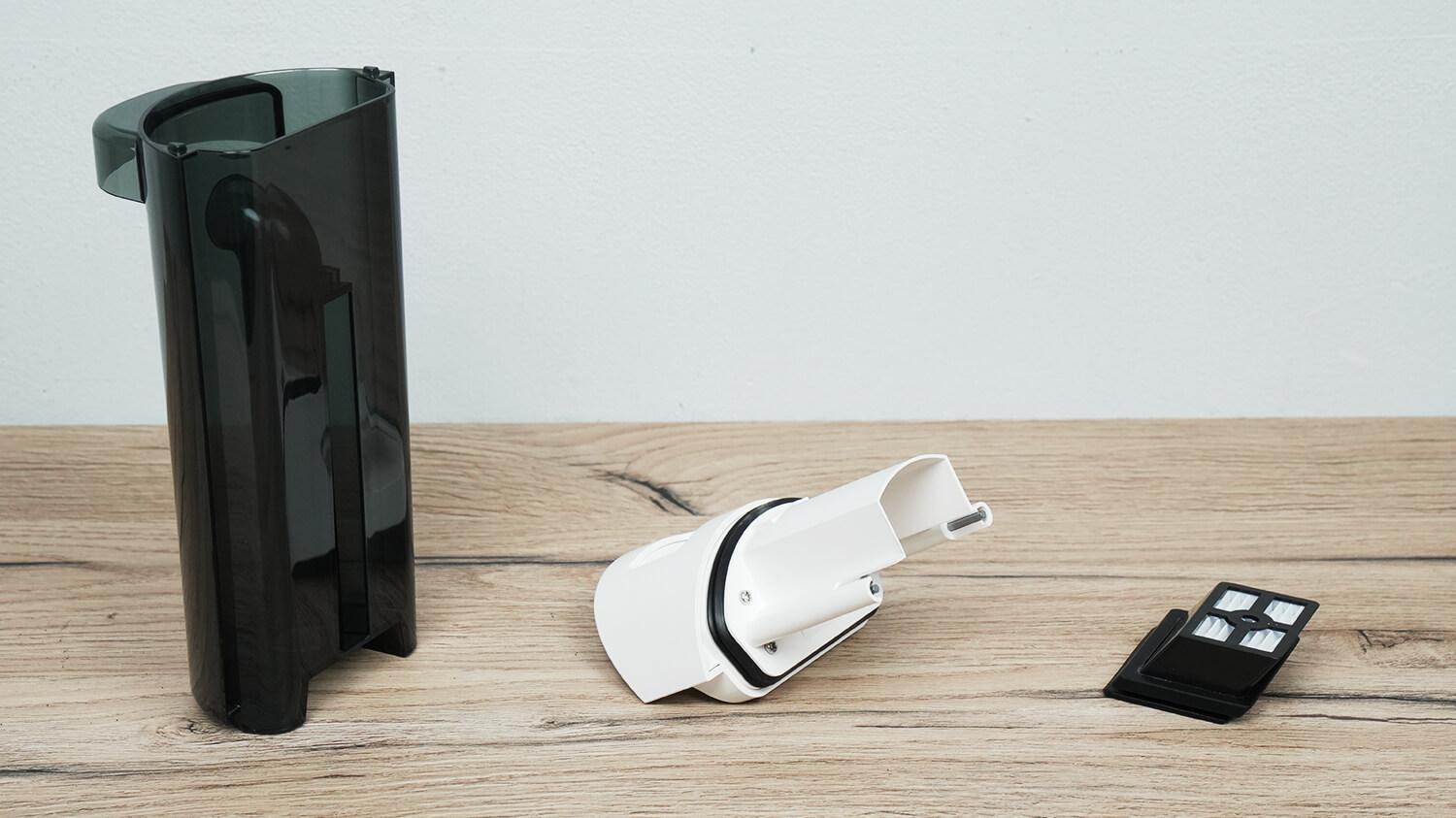 Išpakavus, dulkių siurblį, kaip ir kitus šlapio/sauso valymo dulkių siurblius, galima įsigyti su standartiniu pūkelių valymo voleliu. Vietoj jo galima įmontuoti tokį kempininį volelį. Gamintojo teigimu, jis geriau tinka skysčiams surinkti ir dėmėms šalinti.